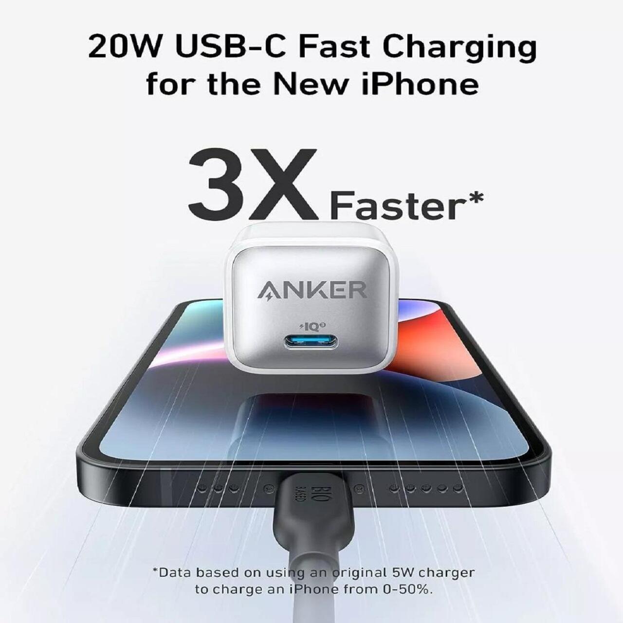 The Anker 512 Nano 3 charger offers fast 20W charging via USB-C, ideal for compatible devices. Its compact design and PowerIQ 3.0 technology ensure efficiency and safety.