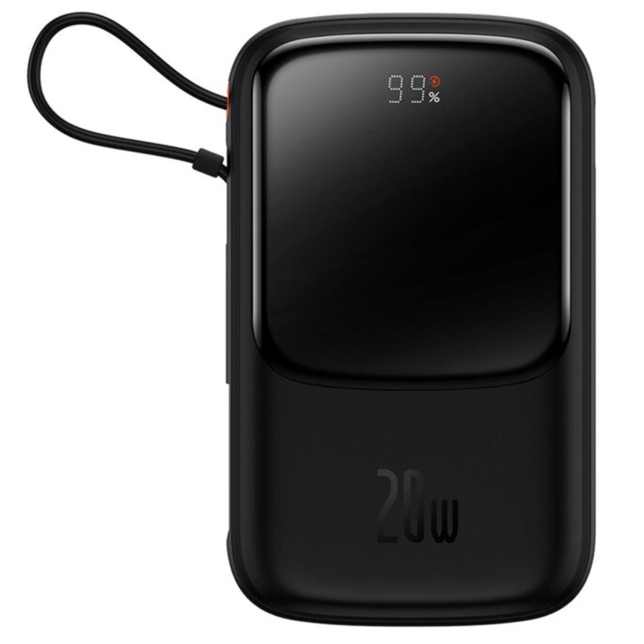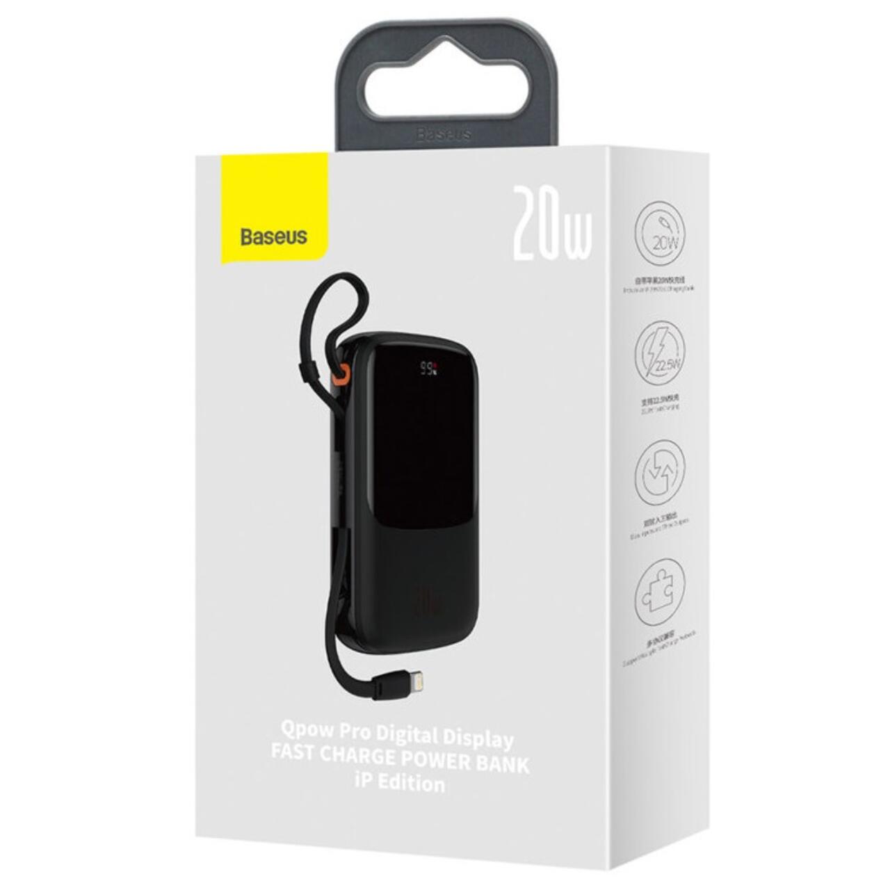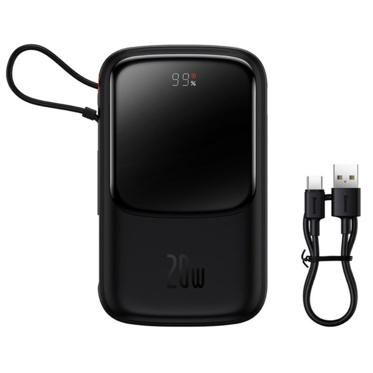 Baseus External battery Q Pow Digital Display 20000mAh, 20W, Lightning, Type-C, USB, USB-C cable, 3A, Black
