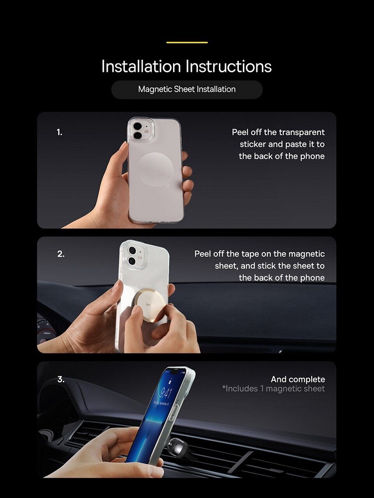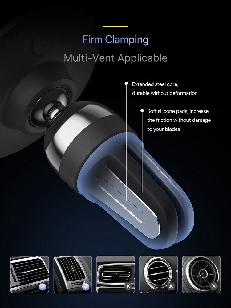 Thanks to the carefully thought-out design, the holder does not scratch the parts of your car, the silicone clip is completely safe for the surface, and the magnetic plate placed on the smartphone will provide an even better attraction.