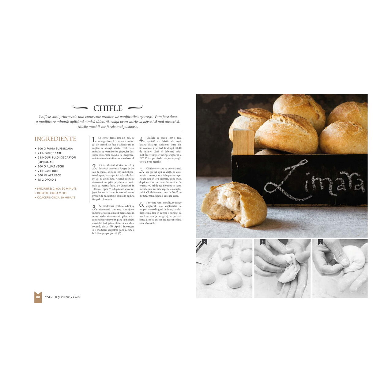 In this book, the author reveals to us in 12 steps the charm of kneading and baking bread, the joy of offering your loved ones a ruddy loaf made with your own hands. Step by step, beginners are instructed on how to bake yeast dough, for advanced users the author has collected the most requested recipes, and for those who want to experiment she has reserved various delicacies from the range of pastry products: cozonacs and donuts, various croissants and buns, pita, pies, langos, bars, sweet or savory snails.