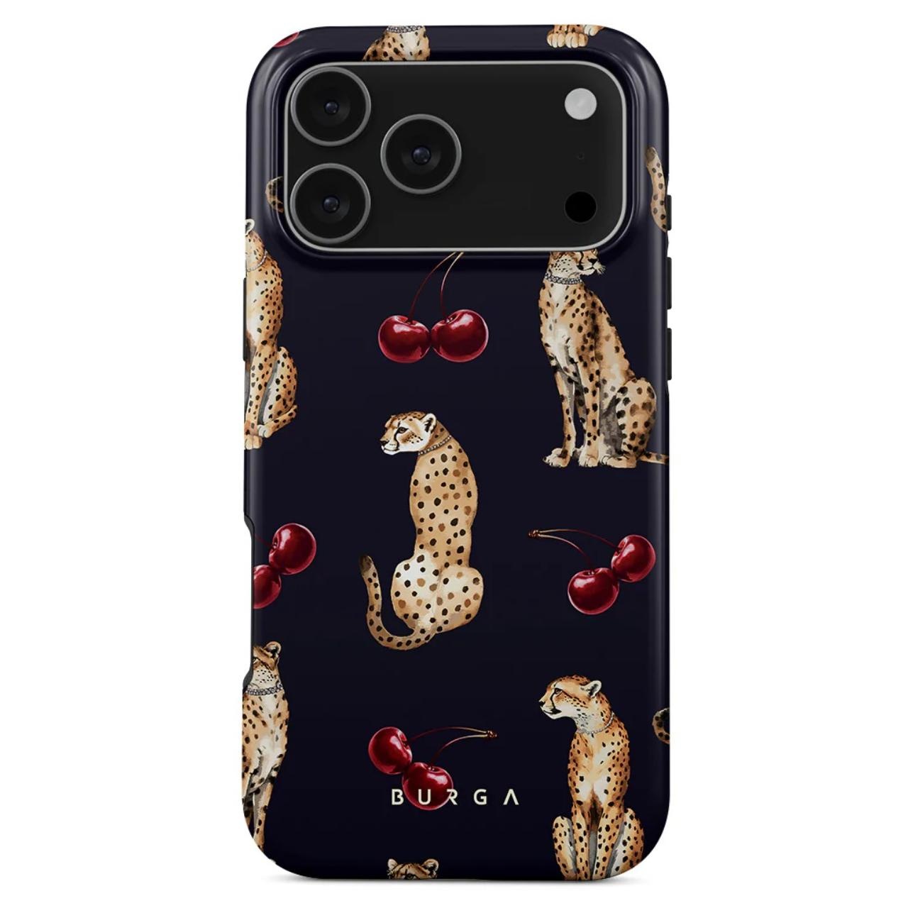Dual Layer Magsafe Cougar Case for iPhone 17 Pro Max from Burga, has a unique and colorful pattern, and the silicone interior will protect the device during falls while the 2 mm raised bezels offer screen and camera protection.