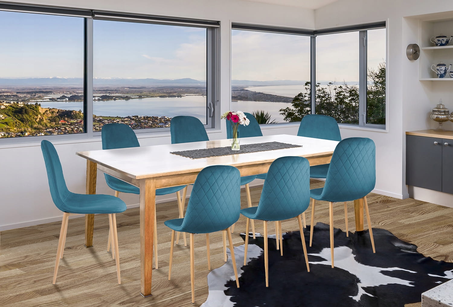 Kitchen/living room chair, Jumi, Vigo, velvet, metal, navy and natural blue, 44x52x85 cm