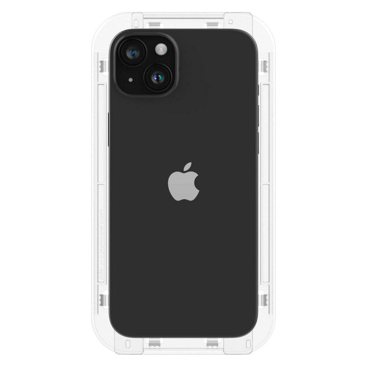 Folie Glass Tr ez fit privat bei Spigene for iPhone 15 , es ist durch einen perfekt geschnittenen Befestigungsrahmen vor dem Telefon geschützt, da Sie ihn perfekt auf dem Bildschirm positionieren können.