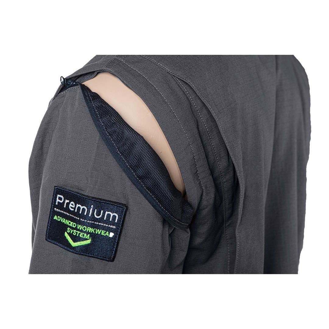 Die Arbeitsjacke Modell PREMIUM, von NEO, besteht aus 100 % Baumwolle.