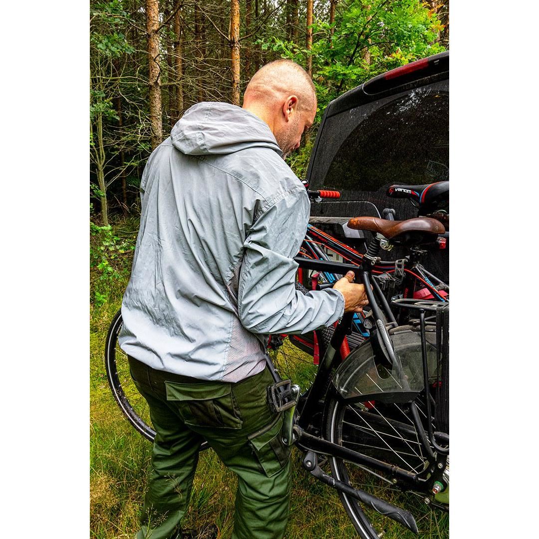 Es hat eine Kapuze mit hohem Kragen. Überschüssige Feuchtigkeit wird durch das Material an der Jackenseite abgeleitet. Der reflektierende Stoff, aus dem die Jacke besteht, sorgt zu jeder Tageszeit und bei verschiedenen Wetterbedingungen für gute Sichtbarkeit und Sicherheit. Es lohnt sich, es dabei zu haben, insbesondere außerhalb städtischer Gebiete, wenn gute Sicht wichtig ist.