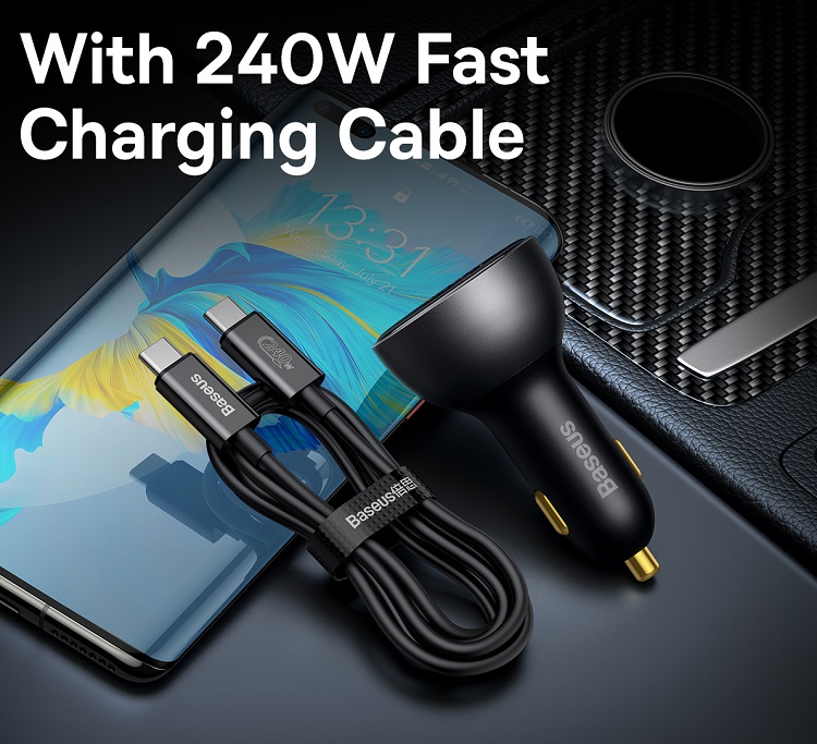 Baseus Autoladegerät Set Digial Display 140W Schnellladegerät PD, QC3.0, 1x USB, 1xTyp-C, inklusive Kabel Typ-C, 1m Schwarz