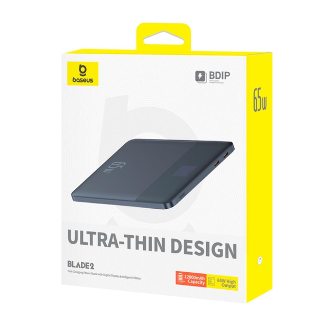 Baseus Externer Akku Blade 12000mAh, 65W, 2x Typ-C, Digitalanzeige, USB-C-Kabel, Blau