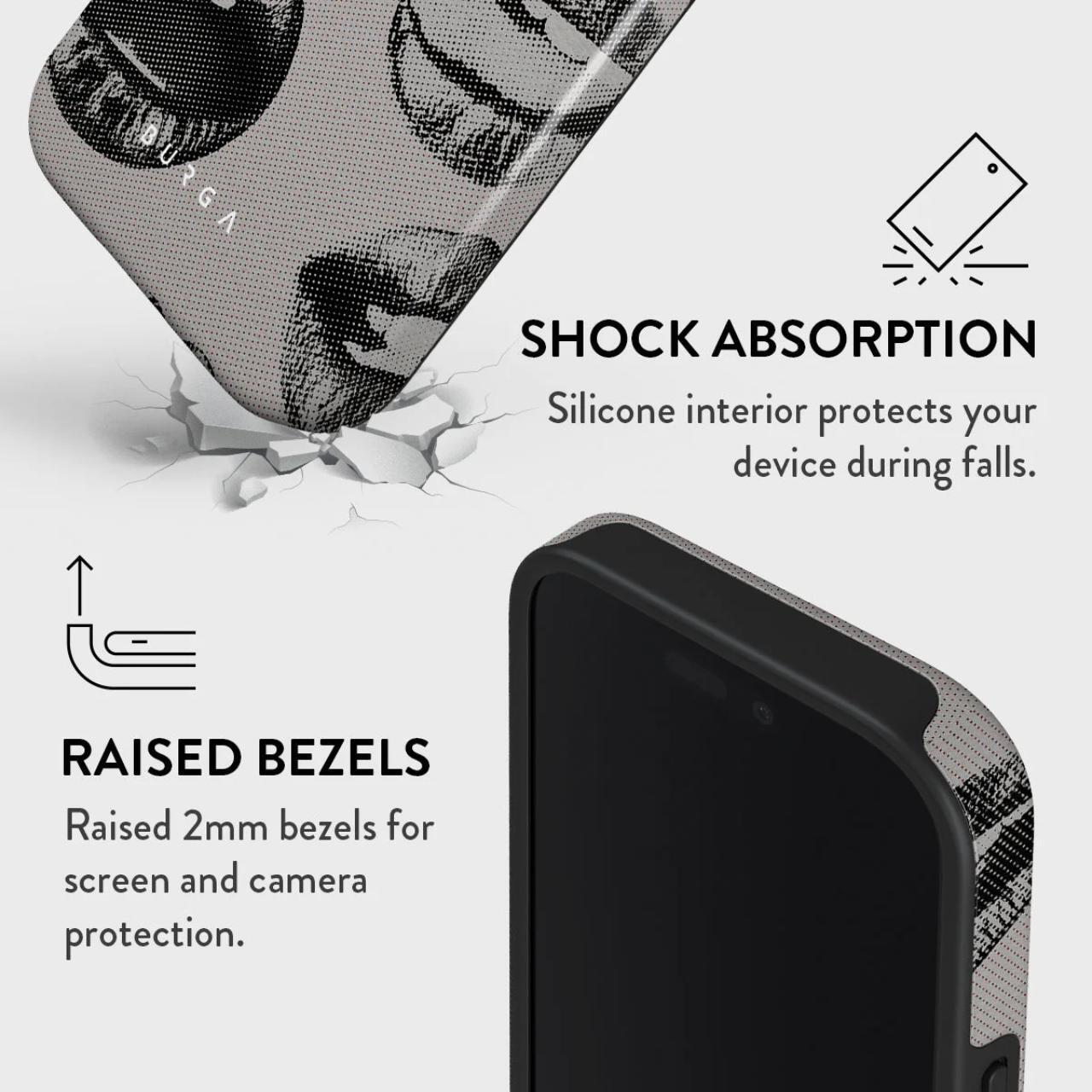 Die Dual Layer Next Mistake-Hülle von Burga besteht aus hochwertigen Materialien, die die Abnutzung Ihres Telefons verhindern, und dank ihres innovativen Designs werden Sie mit Sicherheit alle Blicke auf sich ziehen.