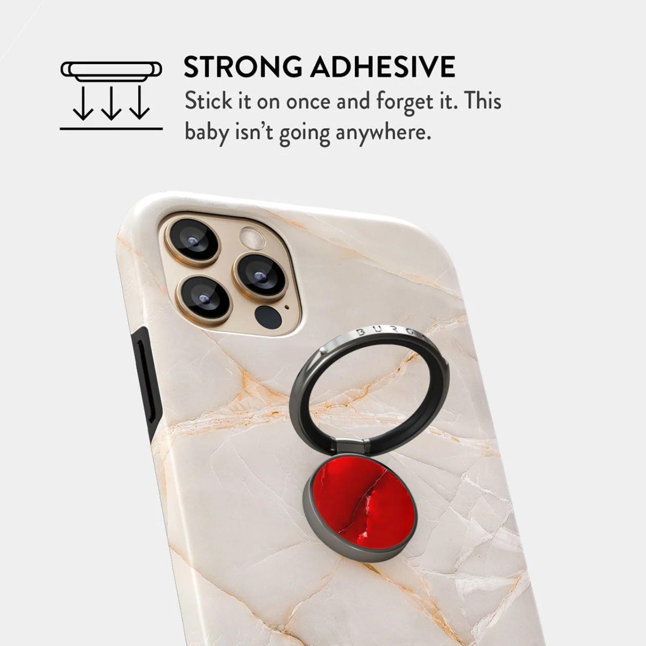 Telefonring von Burga, besteht aus hochwertigen Materialien wie einer Zinklegierung und Edelstahl ist ultradünn und leicht. Die Zinklegierung verfügt über eine gute Abriebfestigkeit, um ein Brechen beim Herunterfallen zu verhindern, und der Edelstahl ist robust und kann den Ring festhalten, sodass er langfristig eine gute Stütze darstellt.