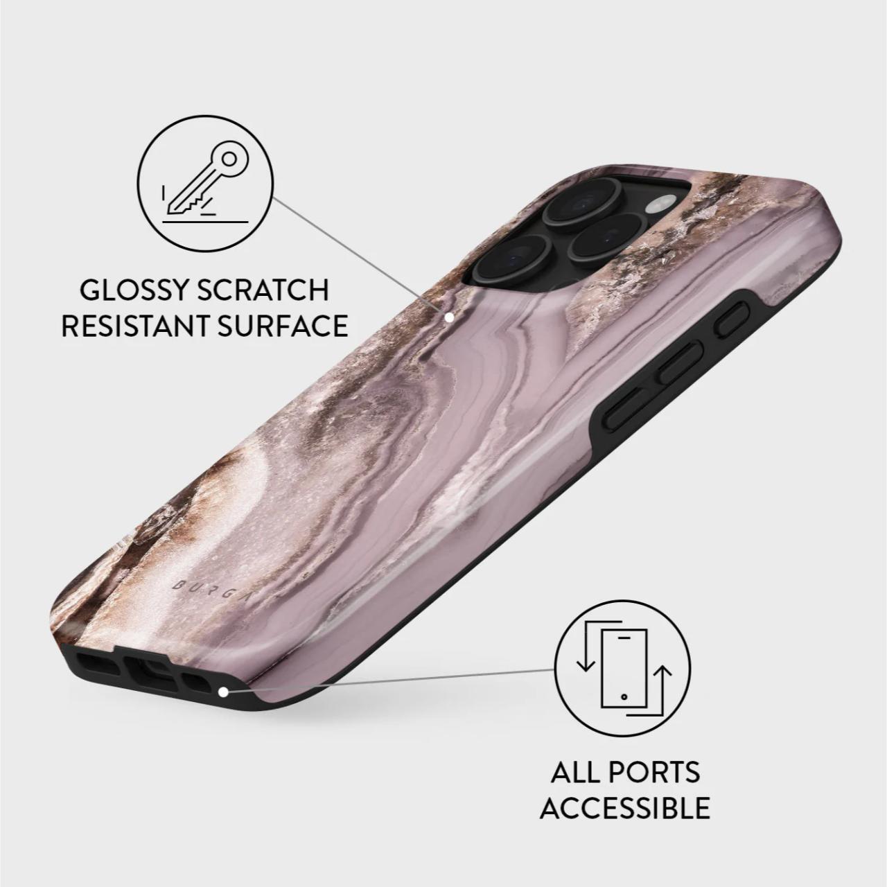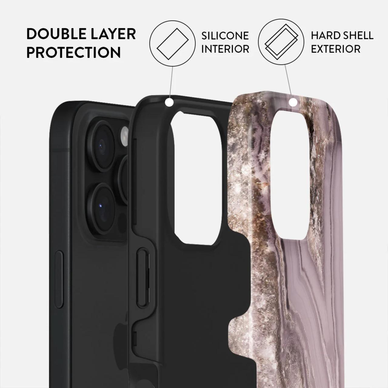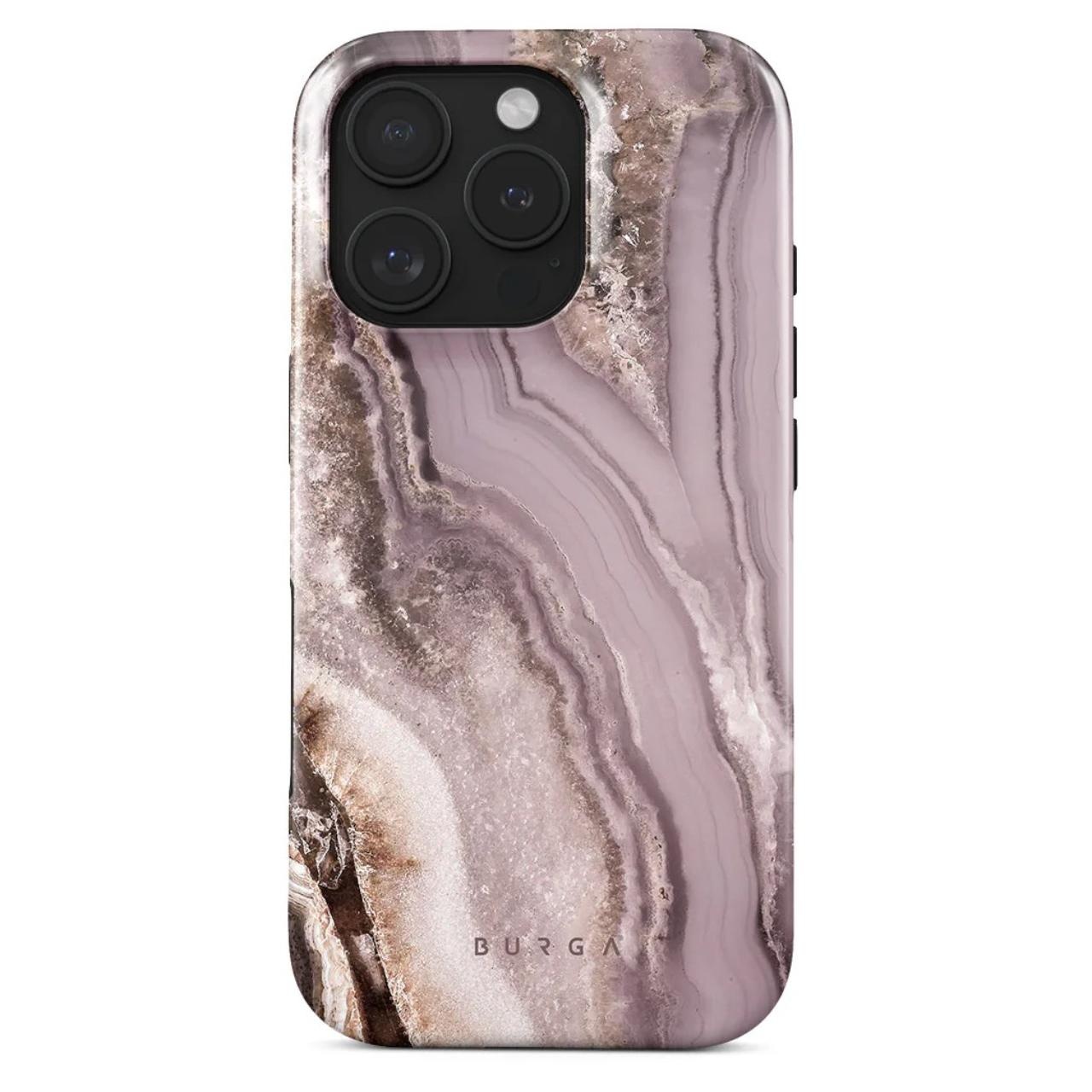 Case Dual Layer Golden Taupe für iPhone 16 Pro von Burga, it hat ein einzigartiges und farbenfrohes Muster und die Innenseite aus Silikon schützt das Gerät bei Stürzen, während die 2 mm erhöhten Ränder Bildschirm- und Kameraschutz bieten.