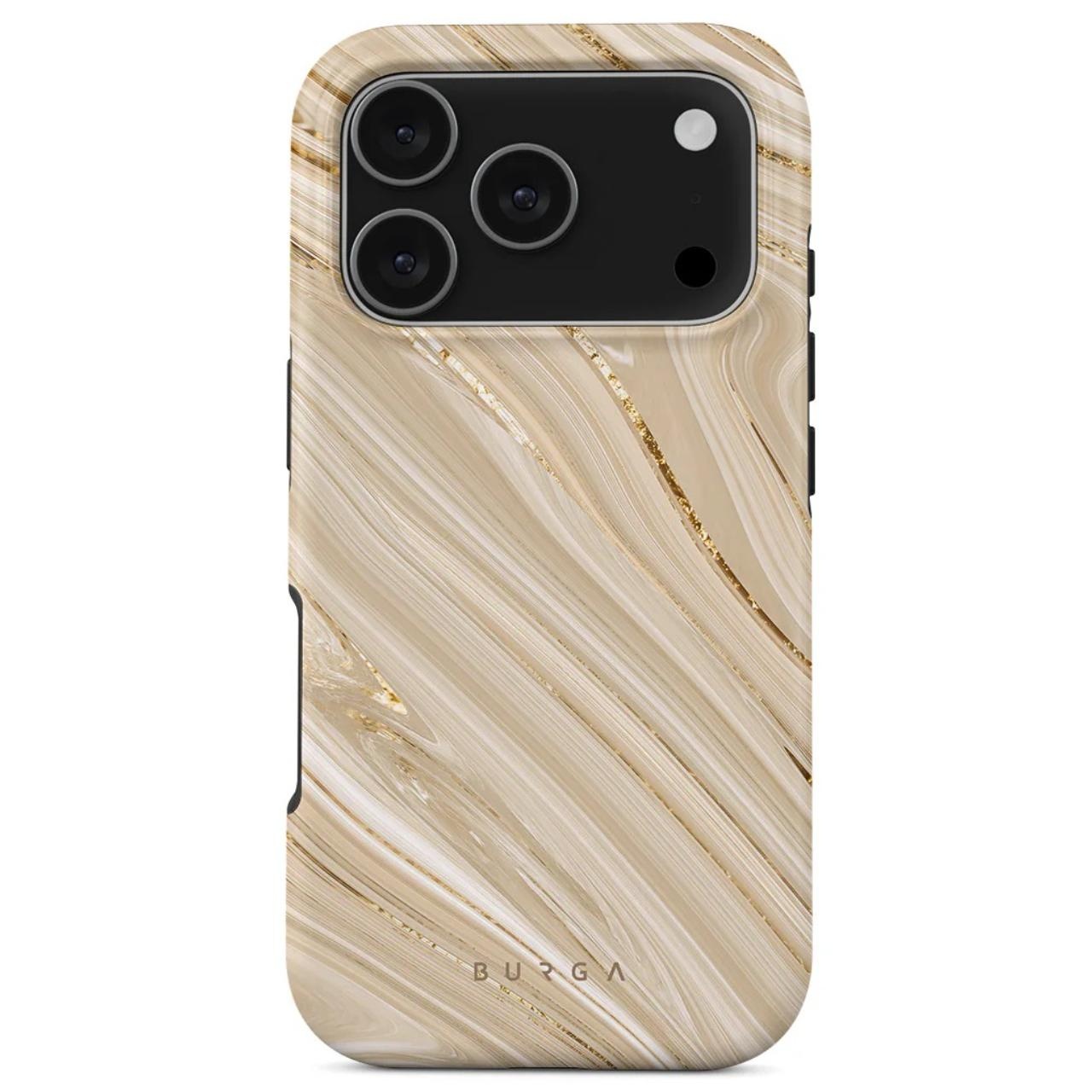 Die Dual Layer Magsafe Full Glam Hülle für das iPhone 17 Pro von Burga hat ein einzigartiges und farbenfrohes Muster und die Innenseite aus Silikon schützt das Gerät bei Stürzen, während die 2 mm erhöhten Einfassungen Bildschirm und Kamera schützen.