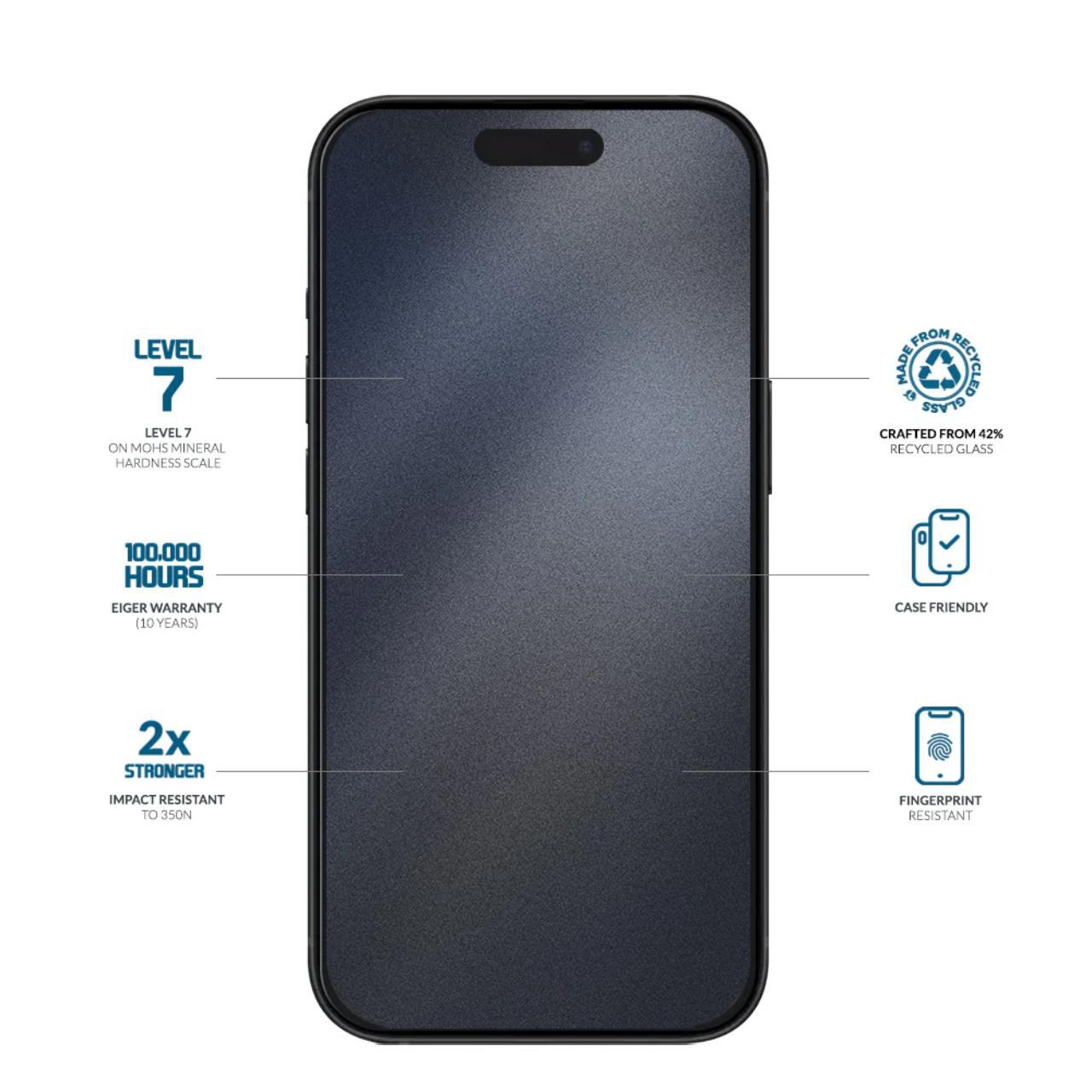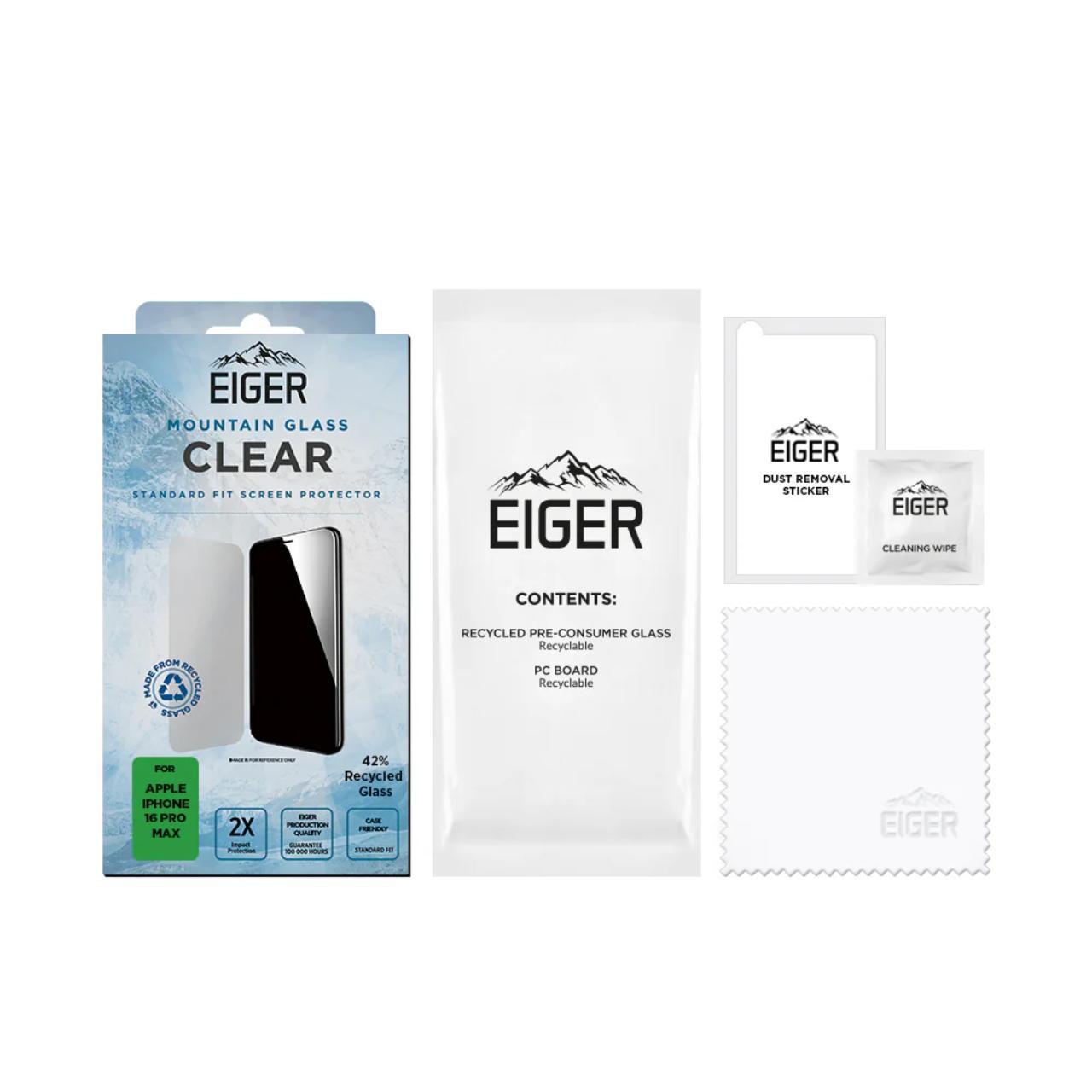Die Mountain Glass GRS iPhone 16 Pro Max Folie von Eiger ist ideal, um Ihr Display vor Stürzen, Stößen und Kratzern zu schützen.