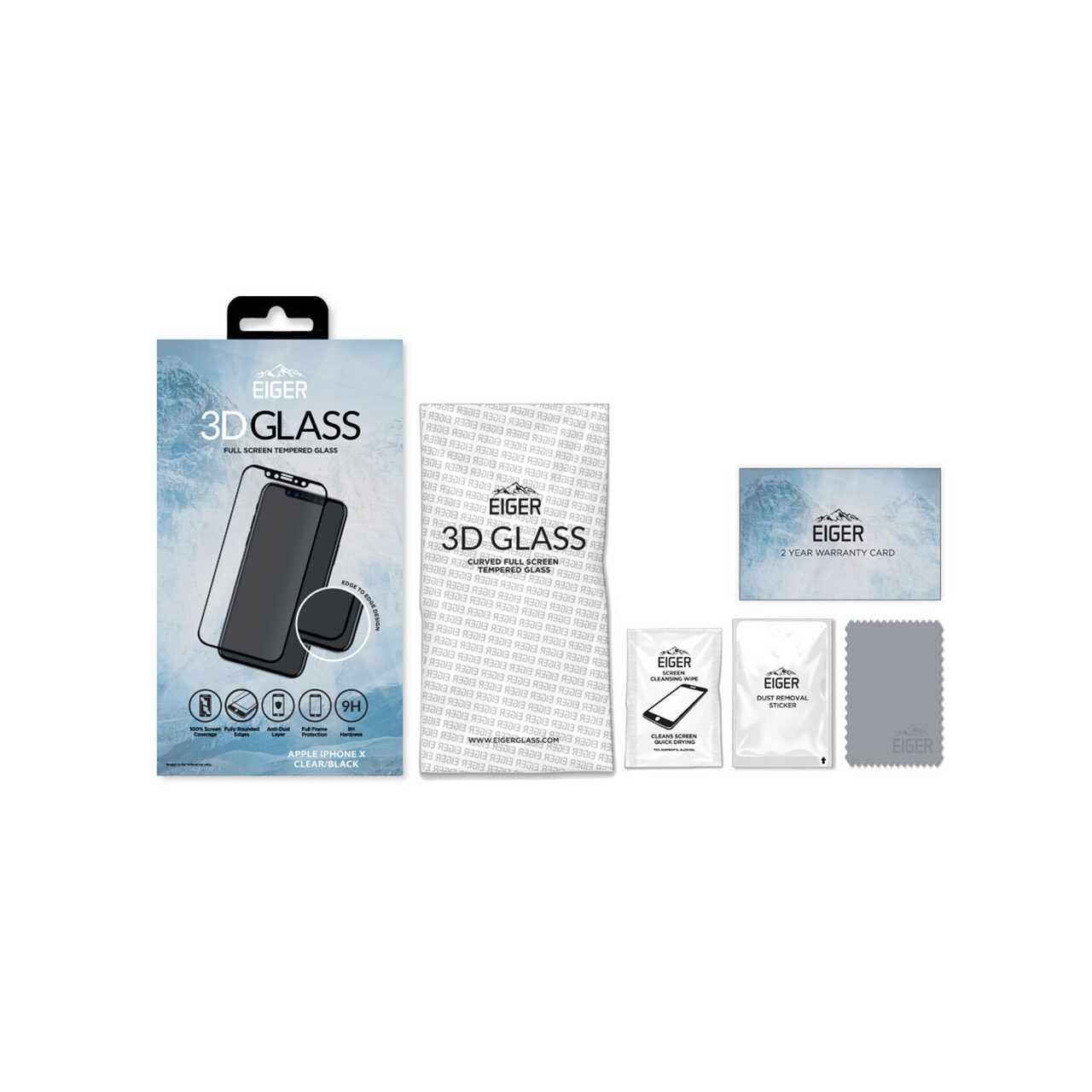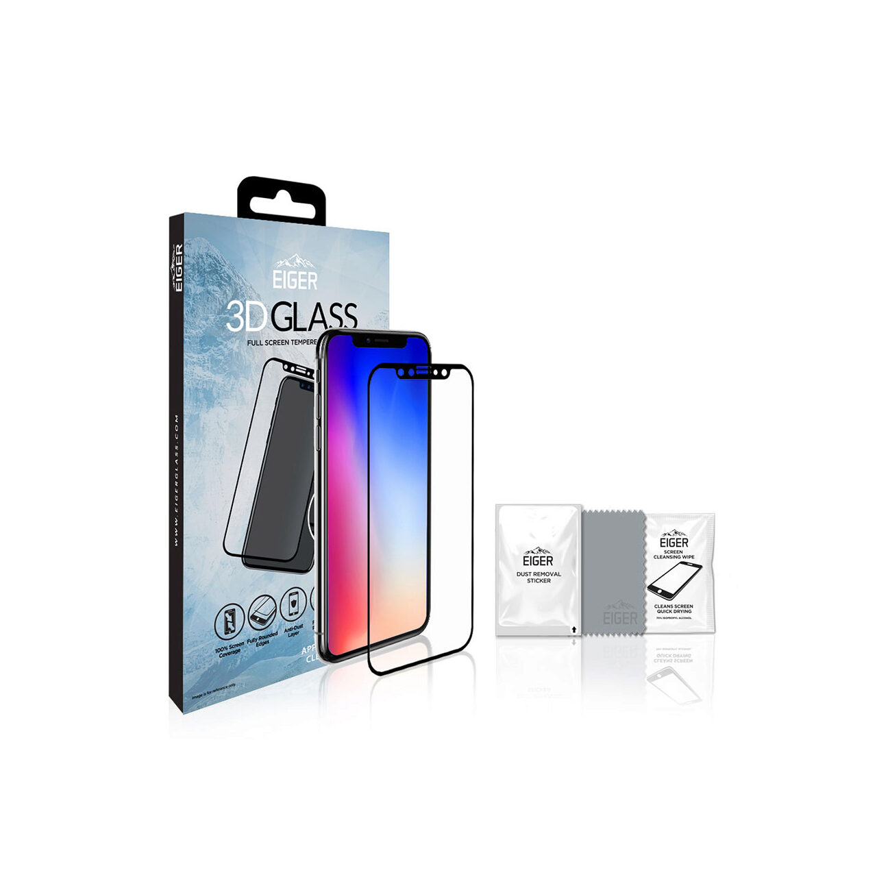Folie iPhone 11 Pro / XS / X Eiger Glass 3D Edge to Edge Clear Black (0,33 mm, 9H, perfekte Passform, gebogen