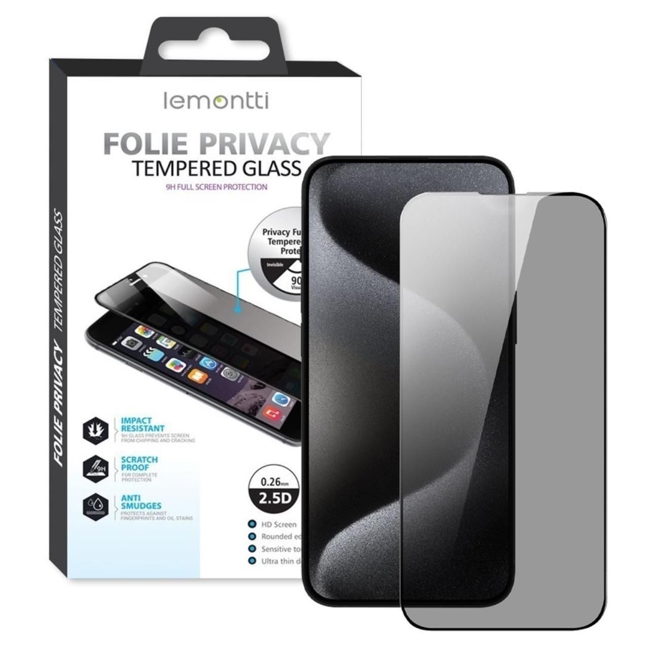 Folie iPhone 11 / XR Lemontti Glass Privacy Schwarz