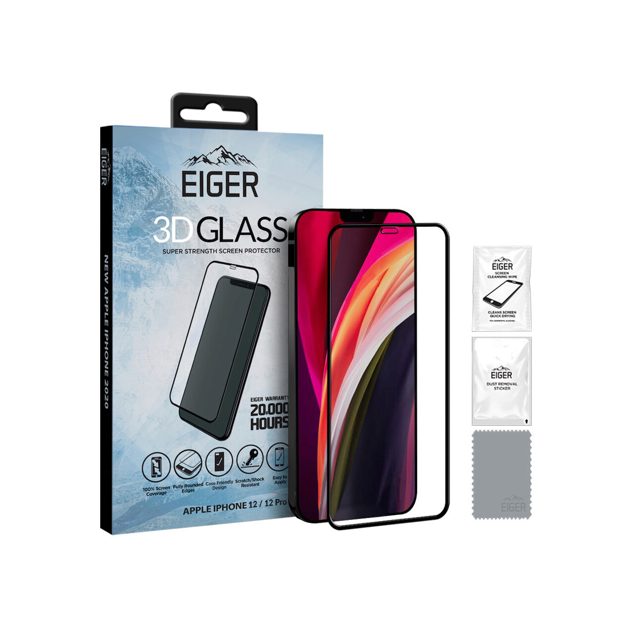 Eiger 3D gebogene Glasfolie iPhone 12 / 12 Pro Klarschwarz (0,33 mm, 9H, oleophob)