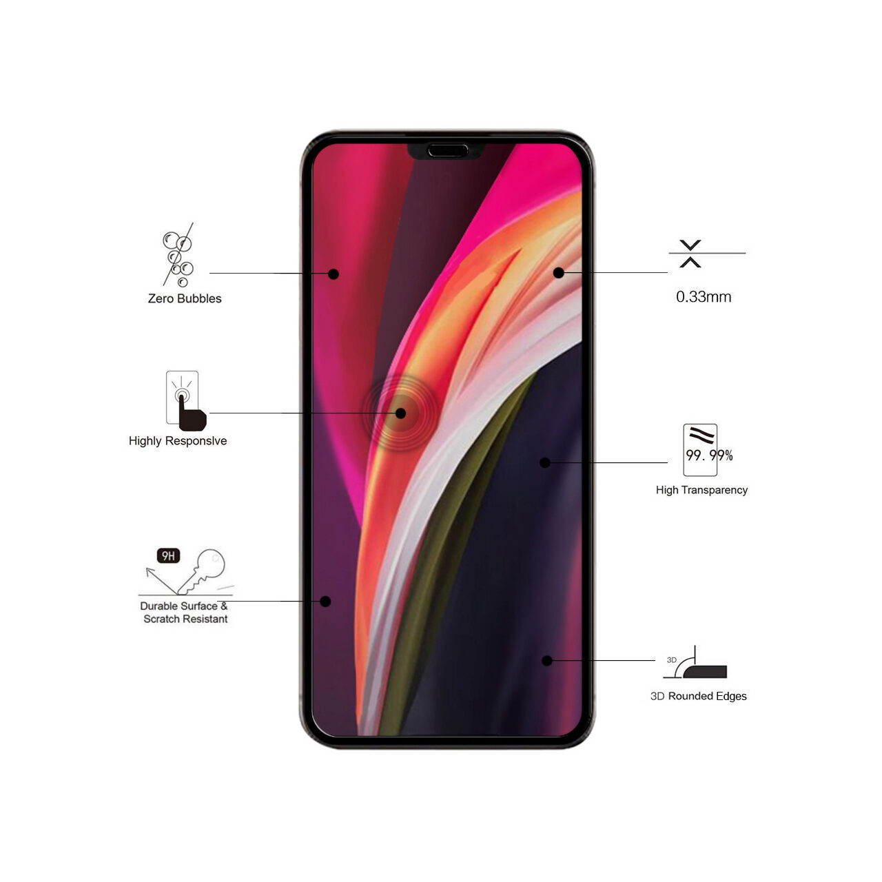 3D gebogene Glasfolie für iPhone 12 / 12 Pro ist ein Premium-Folie aus gehärtetem (gesichertem) Glas, sehr widerstandsfähig gegen Kratzer und Stöße. Es bietet langanhaltenden Schutz vor Kratzern und deckt den gesamten Bildschirm ab.