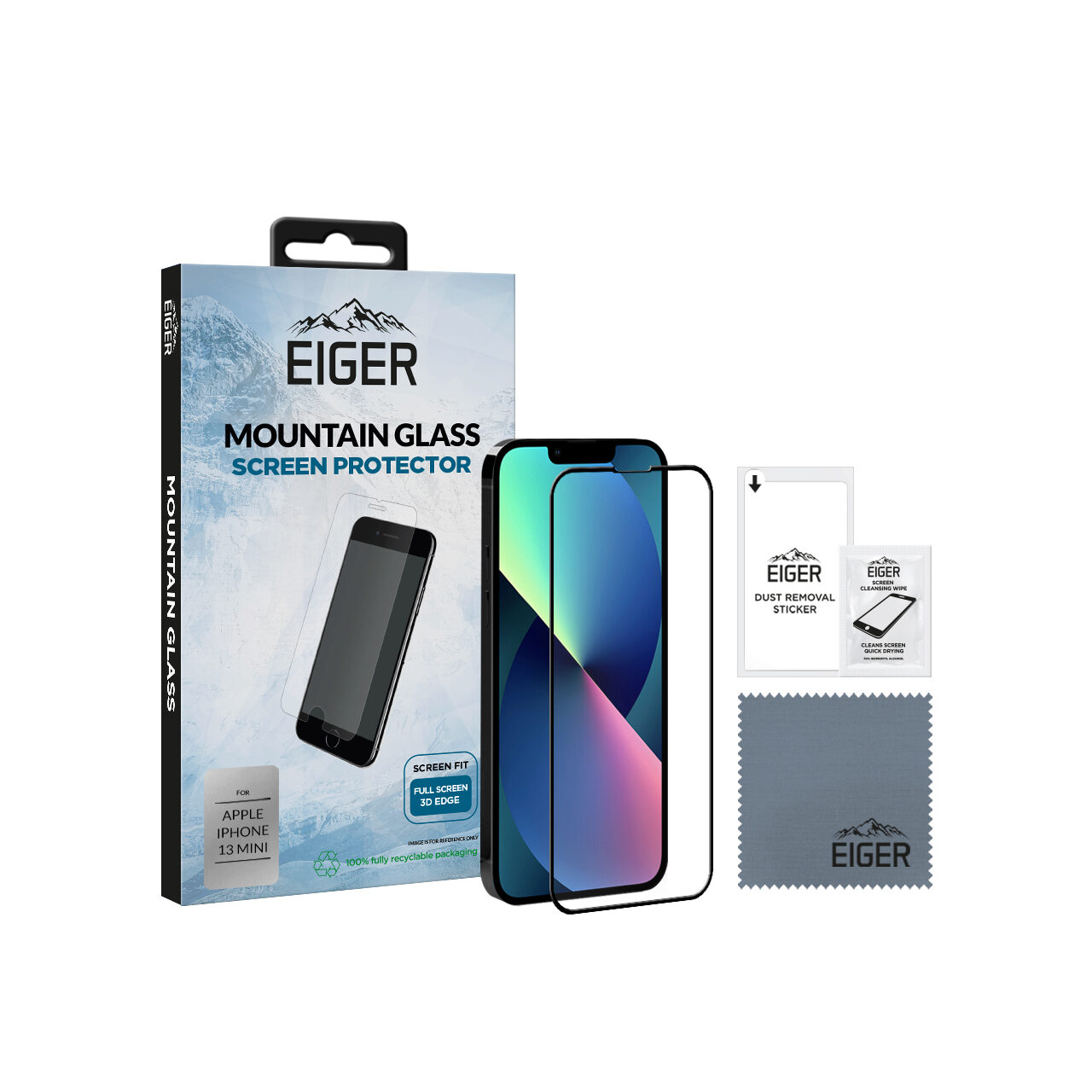 Folie iPhone 13 Mini Eiger 3D Glas Edge to Edge Clear Black