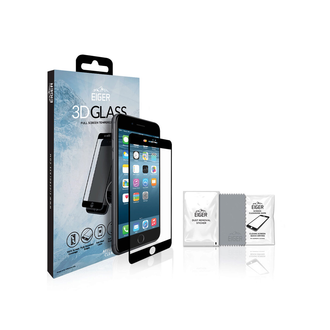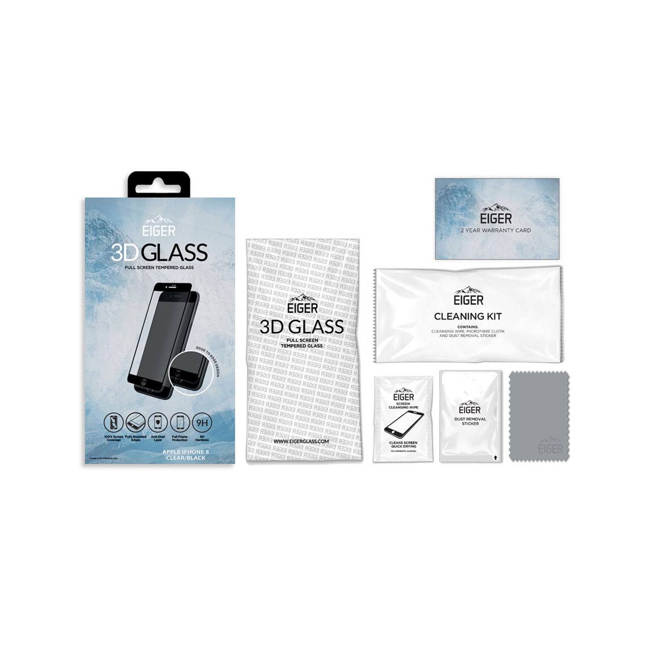 Eiger 3D Edge to Edge Glasfolie iPhone SE 2020 / 8 / 7 / 6s / 6 Klarschwarz (0,33 mm, 9H, perfekte Passform, gebogen, oleophob)