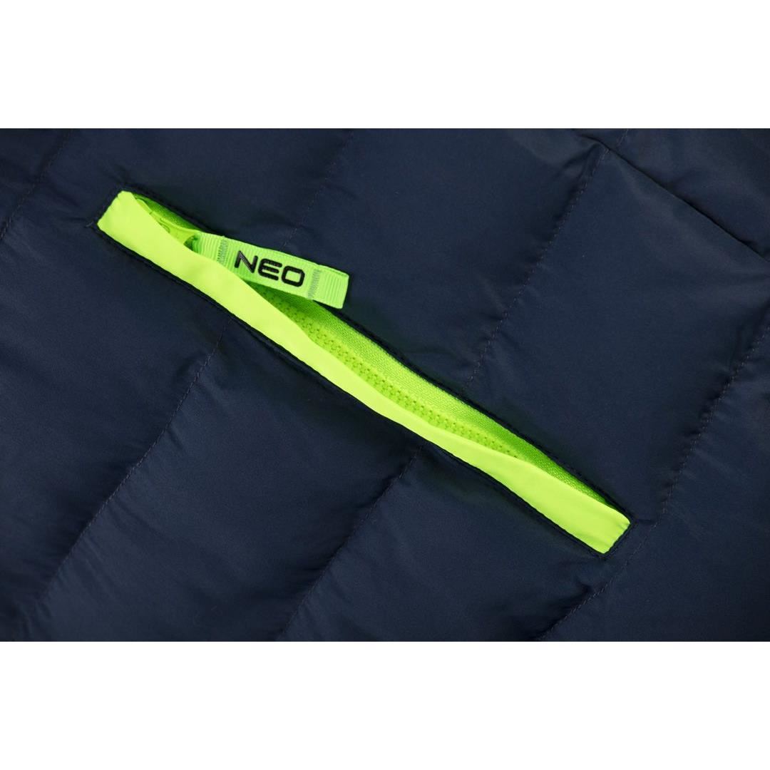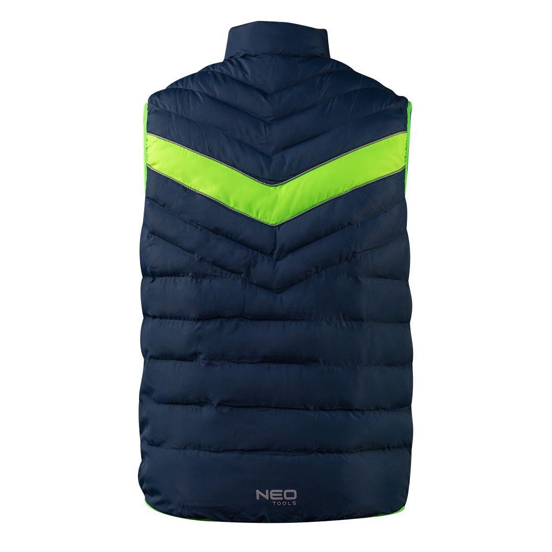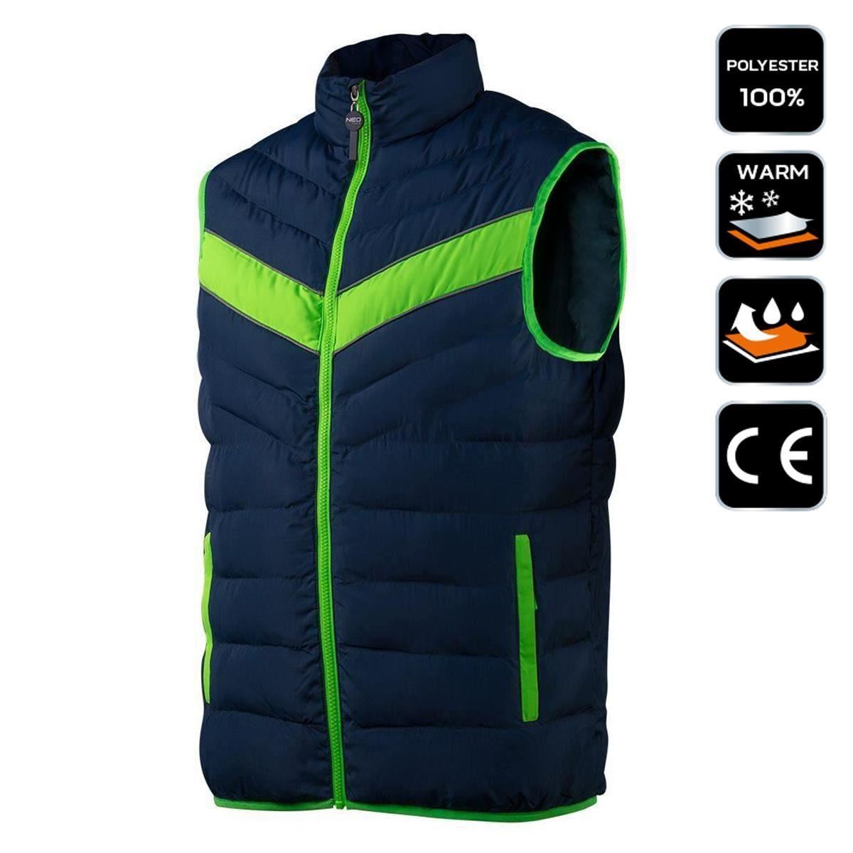Die gesteppte Arbeitsweste PREMIUM von NEO hat eine moderne Kombination aus  Marineblau mit grüne Akzente.