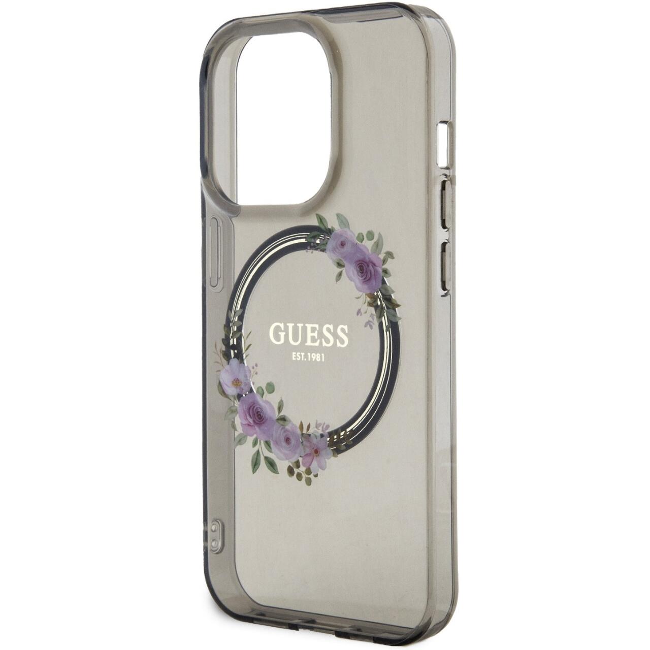 Das Flowers Ring Logo Glossy MagSafe iPhone 15 Pro Case von Guess bietet Schutz für Ihr Telefon und beeindruckt gleichzeitig mit seinem außergewöhnlichen Design. Die Hülle hat ein elegantes Aussehen, dessen Schönheit durch das Guess-Logo auf der Rückseite noch verstärkt wird.
