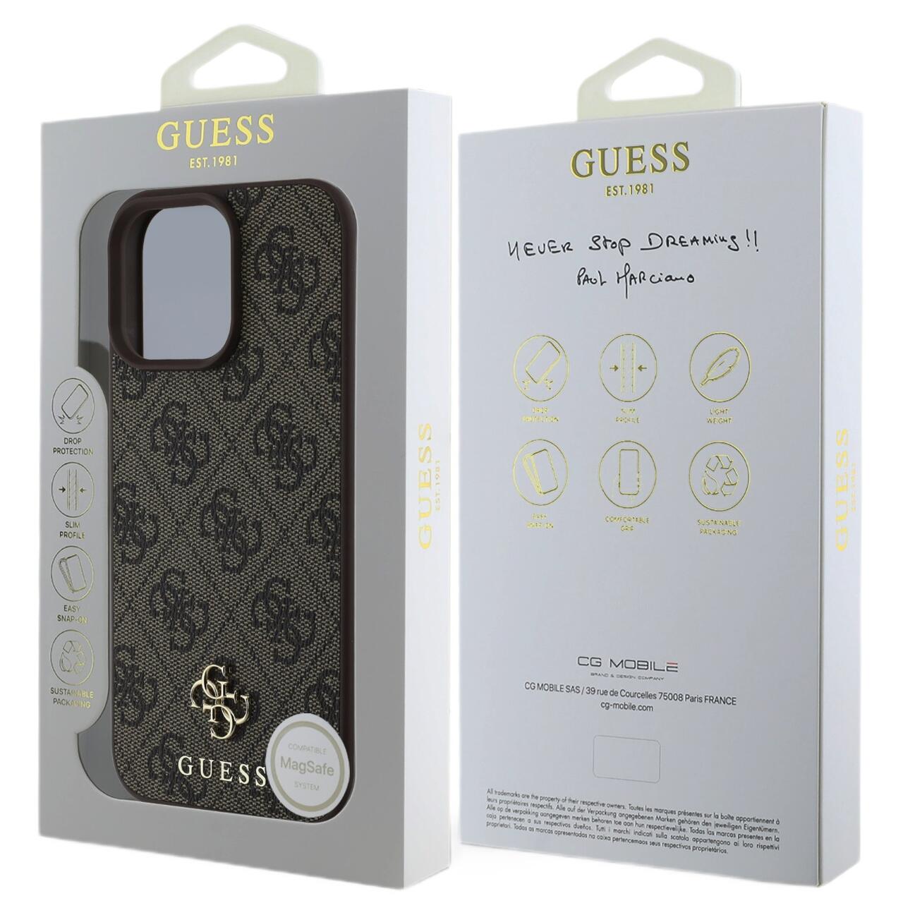 Guess Case PU 4G Small Metal Logo MagSafe iPhone 16 Pro Braun