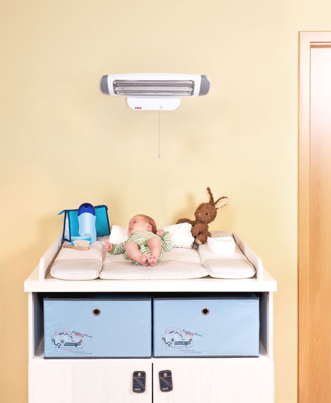 - Sorgt für nach medizinischen Standards geprüfte Wärmestrahlung und Temperaturverteilung- Warmes Licht und sanfte Wärme beruhigen den Baby- Ermöglicht dem Baby in der kalten Jahreszeit bequemes Sitzen ohne Kleidung auf dem Wickeltisch- Kein Lärm und keine Luftzirkulation- Automatische Abschaltung nach 10 Minuten (wählbar), zur Sicherheit und für den effizientesten Energieverbrauch- 2 wählbare Leistungsstufen (400 W/ 800 W), um die gewünschte Wärmestufe effektiver zu steuern- Integrierter Unfallschutz: Das Gerät stoppt automatisch, wenn es sich dreht über- Einfache Bedienung mit Hilfe des über die Zugschnur betätigten Schalters, für erhöhten Komfort- Optimale Wärmeausrichtung durch den Teleskoparm und die individuelle Höhenverstellung der Heizkörperposition im Winkel von 50° ;- Positionierung an der Wand mit Hilfe der integrierten Halterung- Metall- und Kunststoffgehäuse- Länge des Elektrokabels: 185 cm- Abmessungen: 52 x 14 cm- Empfohlenes Alter: ab 0 Monate