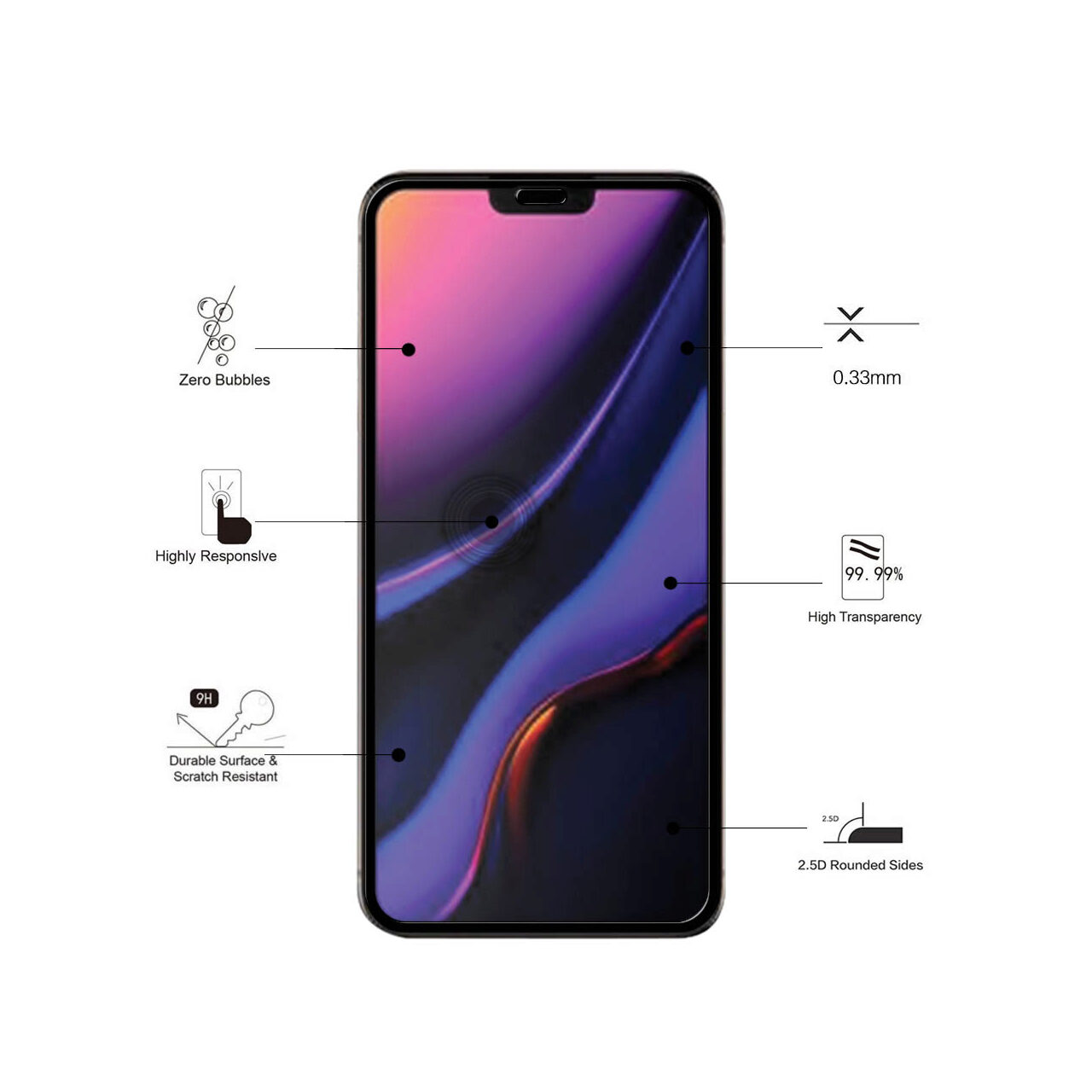 Härte (9H) – oleophobe Schicht – gegen Flecken – Anti-Staub-Schicht – HD-Klarheit – abgerundete Kanten (3D) – schlank (0,33 mm) – behält die gewohnte Empfindlichkeit des Bildschirms – schwarzer Rahmen