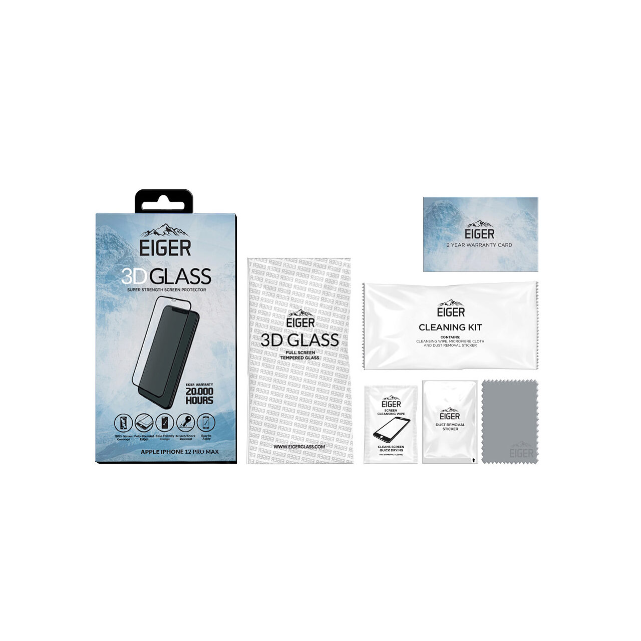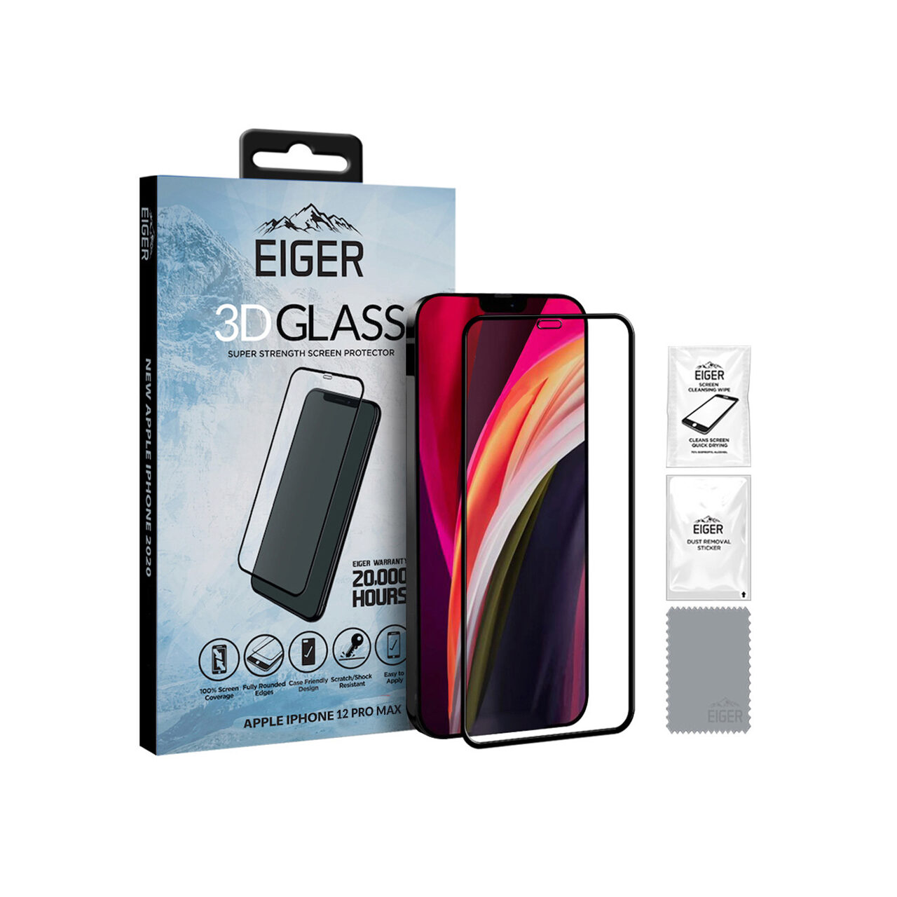 Eiger 3D gebogene Glasfolie für iPhone 12 Pro Max, transparentes Schwarz (0,33 mm, 9H, oleophob)