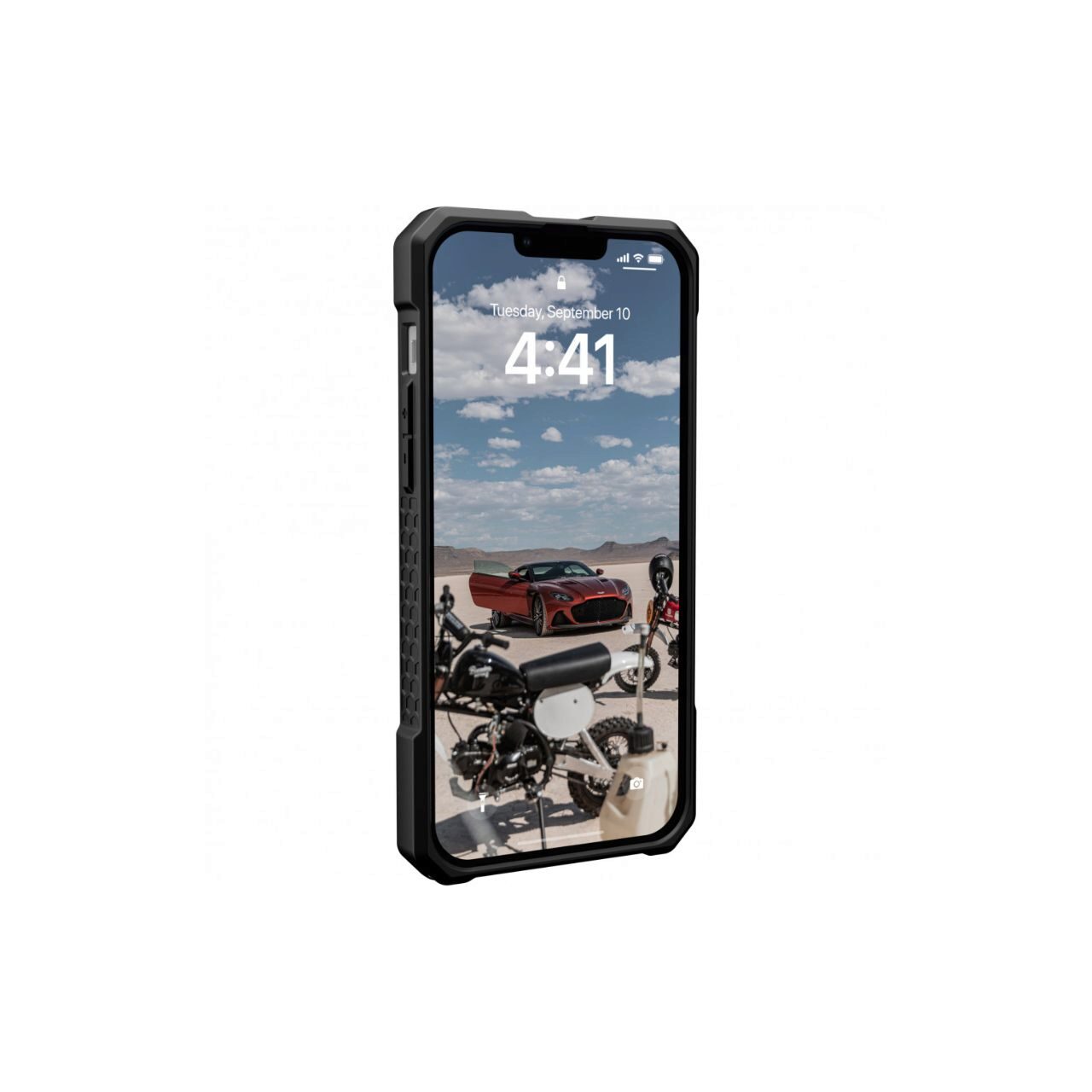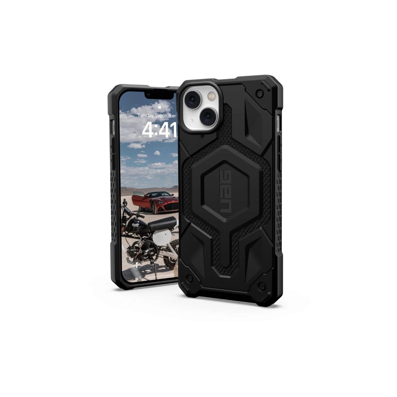 Die Hülle der Monarch-Serie für das iPhone 14 Plus von UAG kombiniert 5 Arten von Materialien in einem erstklassigen Schutz, der versehentlichem Herunterfallen widersteht Kratzer. Die Kanten und die Innenseite bestehen aus flexiblem Gummi und die Ecken sind hervorgehoben und verstärkt, um Stöße erfolgreich abzufedern. Auf der Rückseite ist es mit einer Hartplastikabdeckung (Polycarbonat) im Relief verstärkt, die den Blick auf eine weitere Abdeckung aus hochwertiger Kohlefaser freigibt, die alle mit Hilfe von Metalllegierungsschrauben fest befestigt sind. Erfüllt die militärischen Falltests MIL STD 810G 516.6 zum Schutz vor Stößen und Wassertropfen.