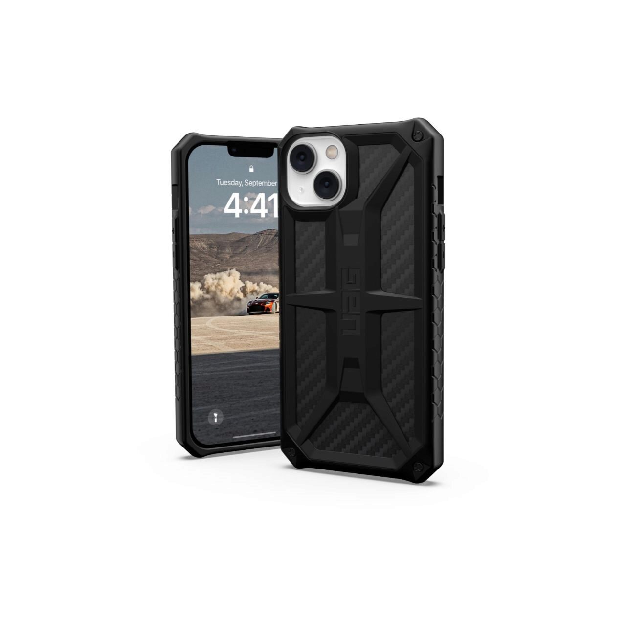 Die Hülle der Monarch-Serie für das iPhone 14 Plus von UAG kombiniert 5 Arten von Materialien in einem erstklassigen Schutz, der versehentlichen Stürzen und Kratzern standhält. Die Kanten und die Innenseite bestehen aus flexiblem Gummi und die Ecken sind hervorgehoben und verstärkt, um Stöße erfolgreich abzufedern. Auf der Rückseite ist es mit einer Hartplastikabdeckung (Polycarbonat) im Relief verstärkt, die den Blick auf eine weitere Premium-Lederabdeckung freigibt, die alle mit Hilfe von Metalllegierungsschrauben fest befestigt sind. Erfüllt die militärischen Falltests MIL STD 810G 516.6 zum Schutz vor Stößen und Wassertropfen.