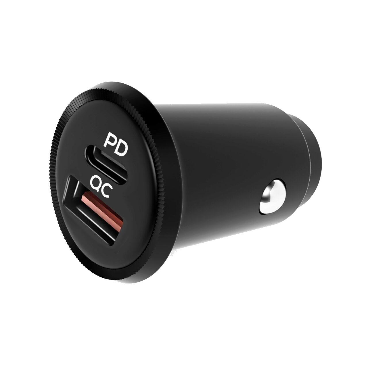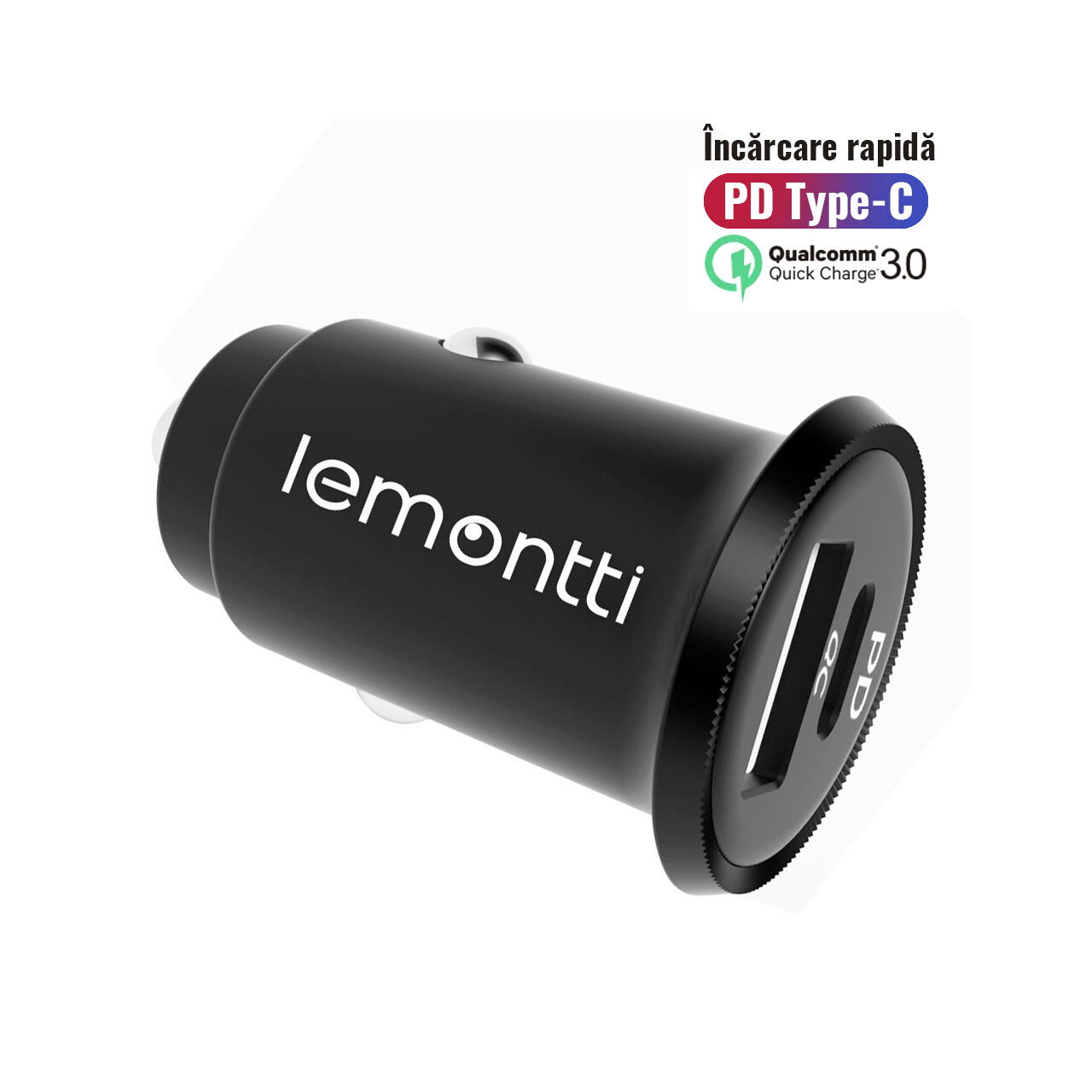 Lemontti Autoladegerät Schnellladung 30 W 5 A 2 Anschlüsse PD Typ C + USB-A QC 3.0, Schwarz