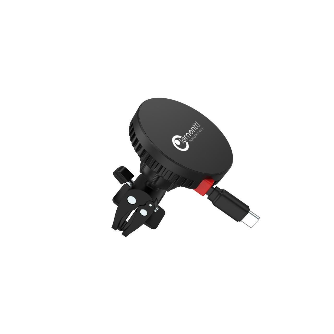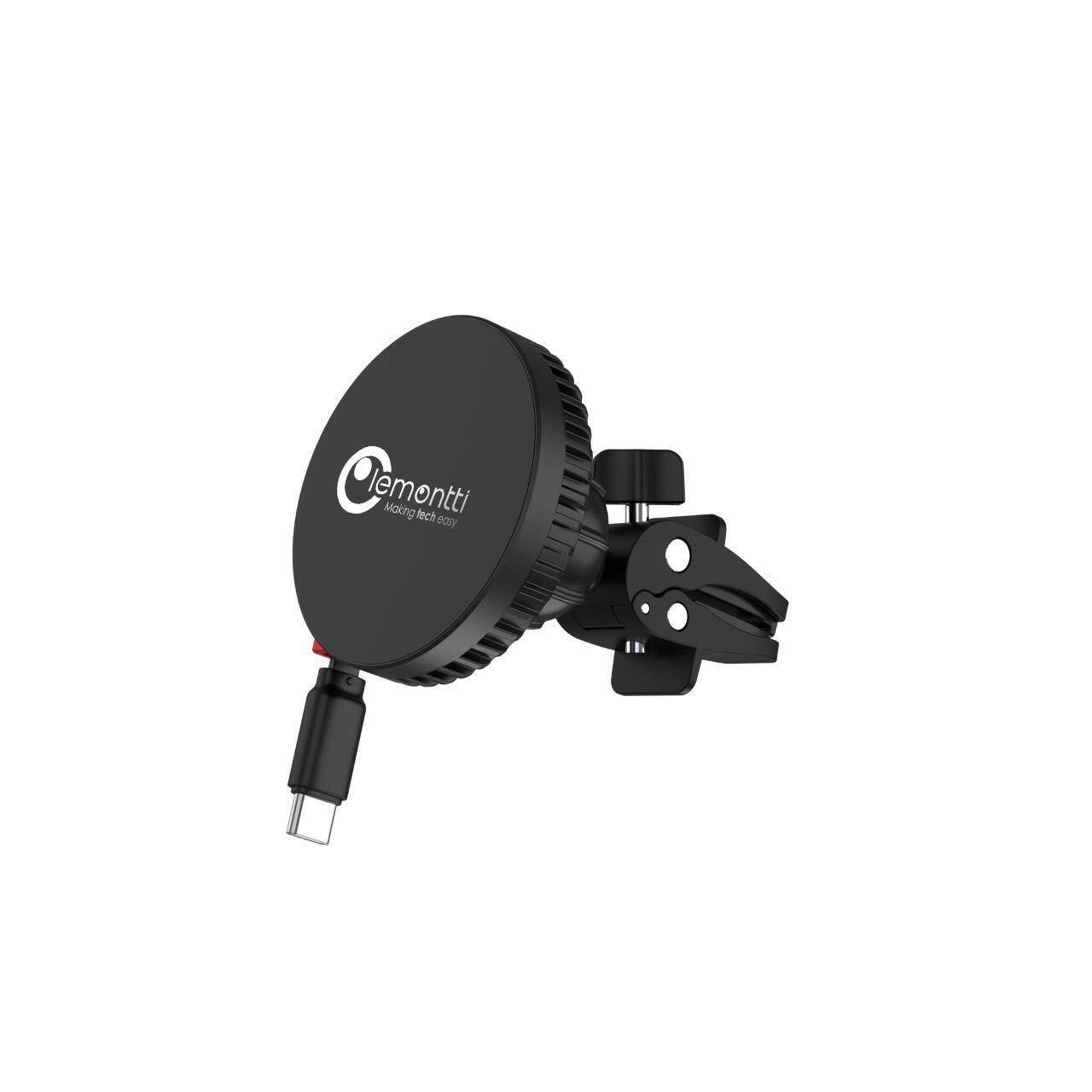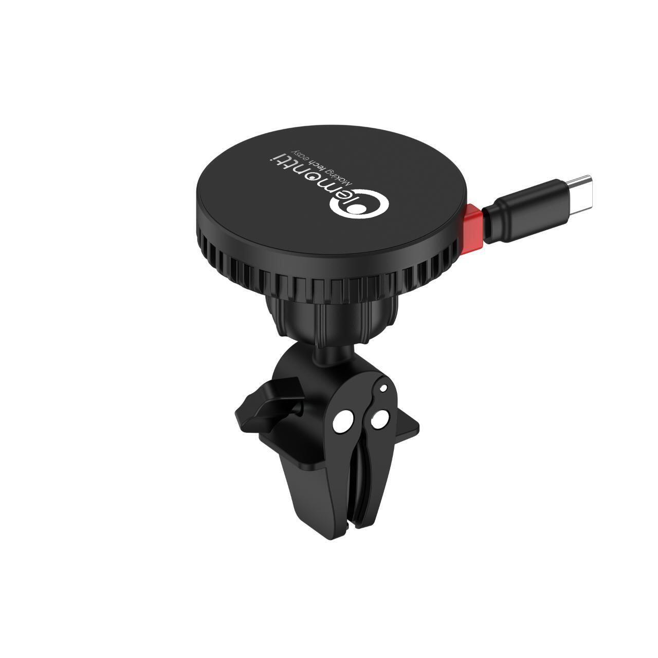 Lemontti MagSafe Magnetische Autohalterung mit kabellosem Laden und einziehbarem Typ-C-Kabel 1 m, Belüftungsclip, Schwarz