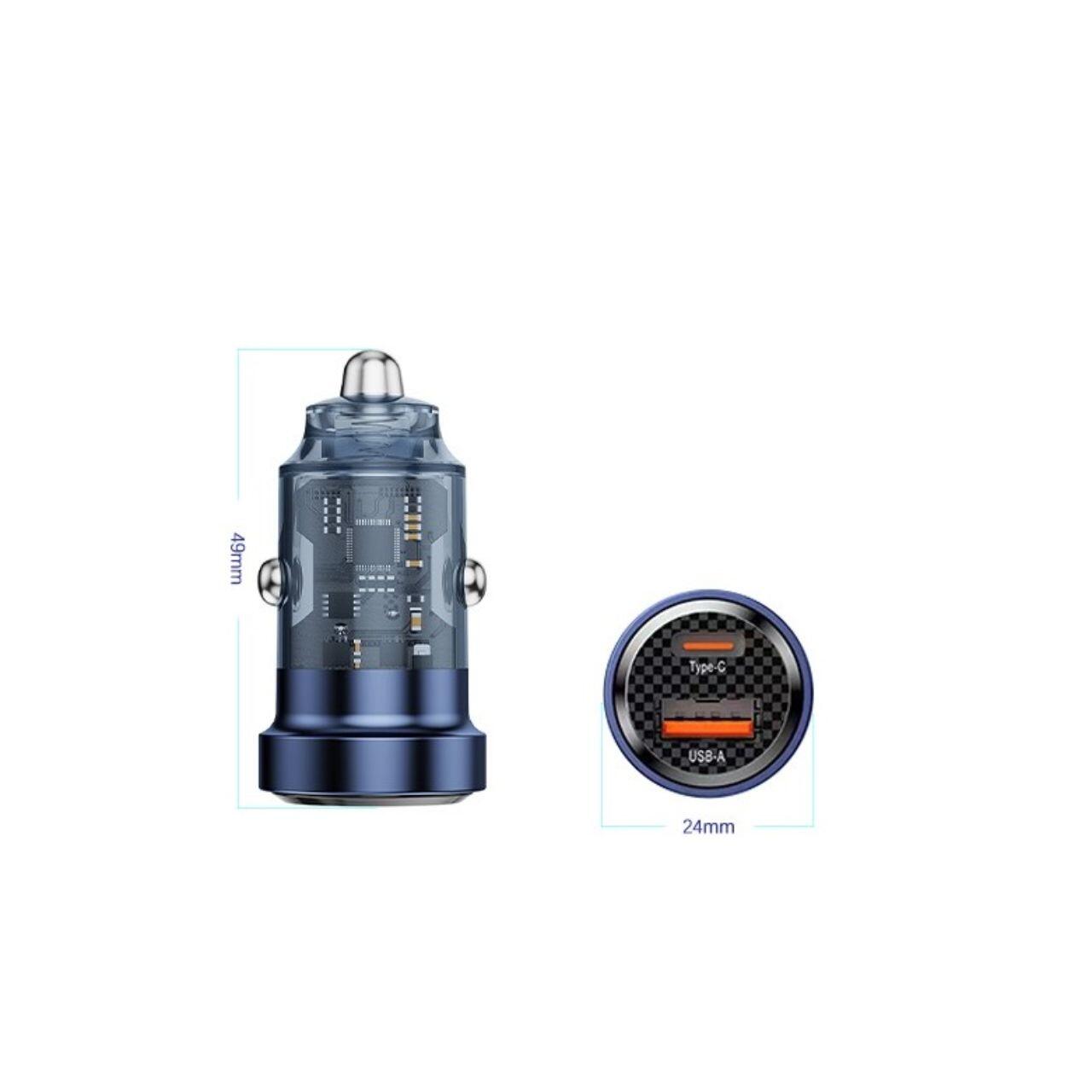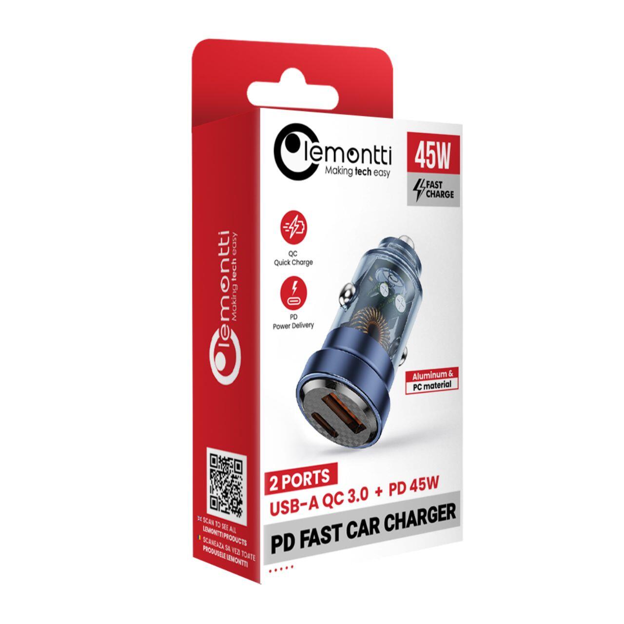 Lemontti Autoladegerät Schnellladung Dual Port PD Typ-C + USB QC, 45W, Transparent / Blau