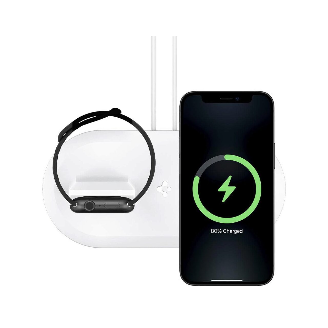 Spigen Magfit Duo unterstützt kompatibel mit Magsafe Apple Ladegerät und beobachten Sie die White -Last von Apple von Spigen . Das schnelle Laden Ihres Geräts auf elegante Weise. Es kann gleichzeitig zwei Geräte, ein Telefon und eine Smartwatch aufladen. Perfekte Übereinstimmung mit Unterstützung. Das System passt intelligent an und schafft es so, 2 Geräte schnell aufzuladen, ohne auf jedes Gerät warten zu müssen. Es passt auf jede horizontale Oberfläche. ; "> Lader und C Laden sind nicht im Paket enthalten! Gleichzeitige Belastung von 2 Geräten