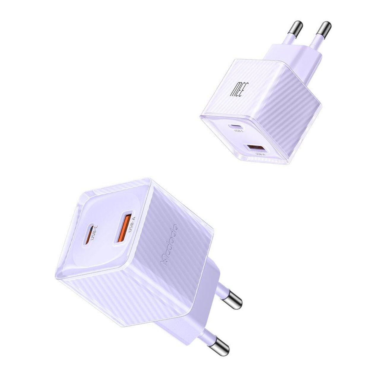 Netzwerk-Ladegerät Dual Port Typ- C und USB-A Dichromatic, Fast Charging PD 33W von Mcdodo, hat ein elegantes und minimalistisches Design, wurde auf Basis der innovativen GaN-Technologie entwickelt und ermöglicht mit einer Leistung von bis zu 33 W das gleichzeitige Laden von zwei Geräten < /p>