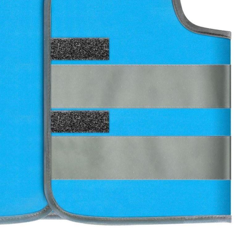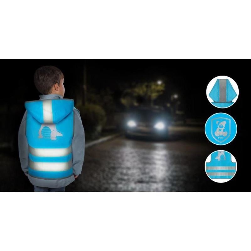 • Erhöht die Sichtbarkeit des Kindes (bis zu 150 m) bei Dunkelheit, Nebel, Regen, Schnee, Staub usw. • Nützlich bei widrigen Wetterbedingungen und im Straßenverkehr • Helle Farbe und 2 kreisförmige reflektierende Streifen, die auf Vorder- und Rückseite sichtbar sind, für bessere Sichtbarkeit • Praktische Kapuze mit breitem Reflexstreifen • Mit reflektierenden Verzierungen auf Vorder- und Rückseite (Dinosaurier oder Elefant, je nach Modell) • Befestigung mit Igeln, zum Anpassen individueller Größen • Weite Ausschnitte, damit es über der Alltagskleidung getragen werden kann, sogar über dicker Winterkleidung • Auf der Innenseite eingenähtes Etikett zum Aufschreiben des Namens des Kindes • Größe: XS, ca. 39 x 43 cm (B x H) • Material: waschbares Polyester • Packungsinhalt: 1 Stück • Farbe blau • Altersempfehlung: über 2 Jahre.