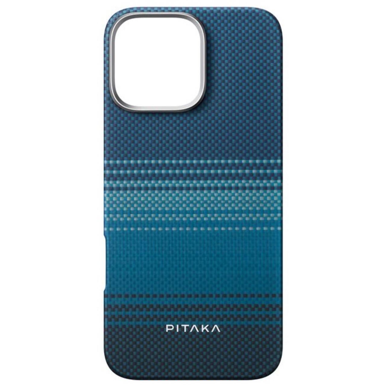 Die Tactile Woven Aramid Magsafe iPhone 16 Pro Max-Hülle von Pitaka, die strukturierte Oberfläche aus Aramidfaser verbessert die Griffigkeit und fühlt sich angenehm an, das minimalistische Design behält das schlanke Profil des Telefons bei und bietet gleichzeitig zuverlässigen Schutz im Alltag.