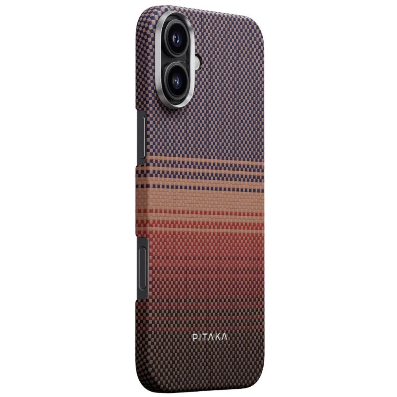 Die Tactile Woven Aramid Magsafe iPhone 16-Hülle von Pitaka, die strukturierte Oberfläche aus Aramidfaser verbessert die Griffigkeit und fühlt sich angenehm an, das minimalistische Design behält das schlanke Profil des Telefons bei und bietet gleichzeitig zuverlässigen Schutz im Alltag.