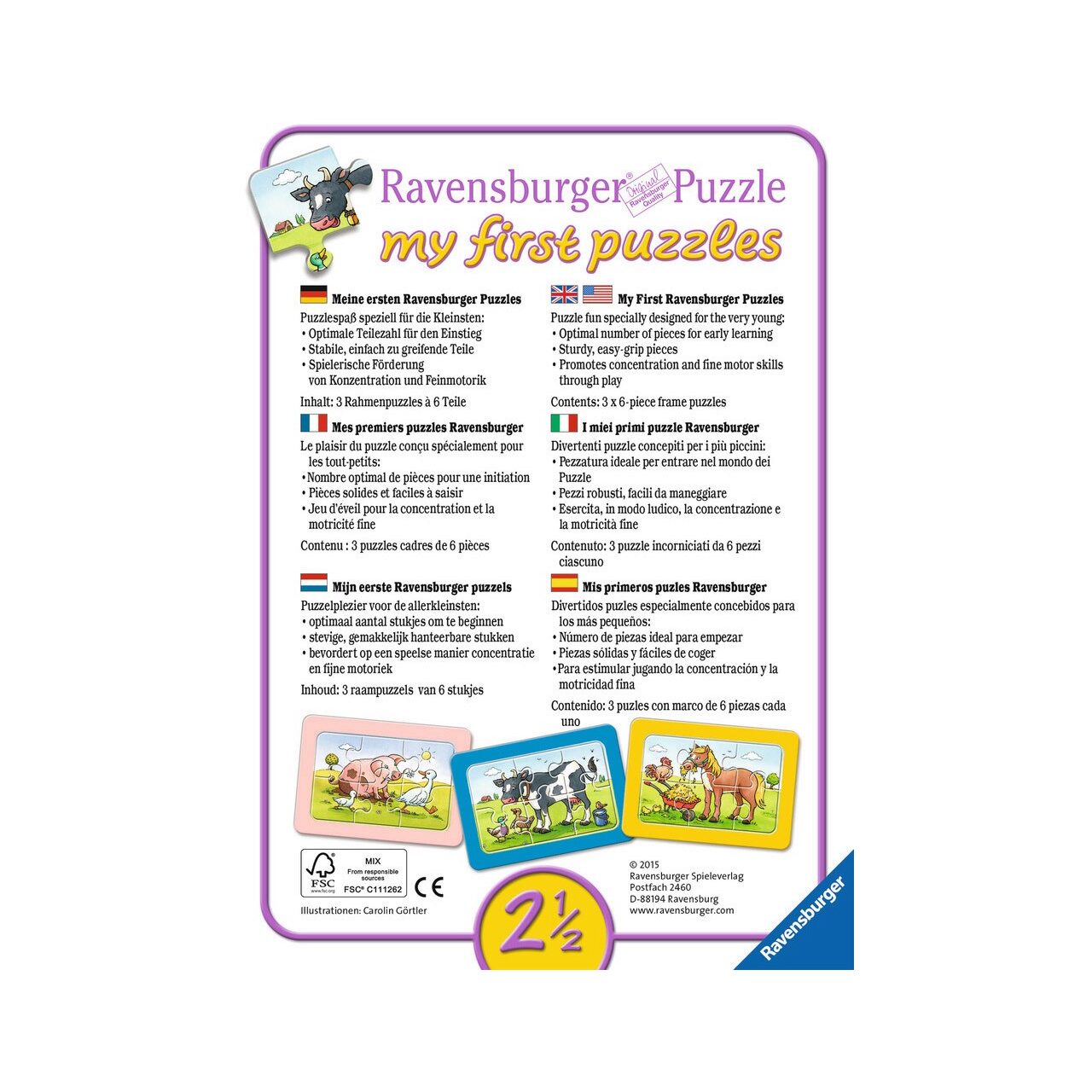 Puzzle Ravensburger - Tierfreunde, 3x6 Teile (06571)