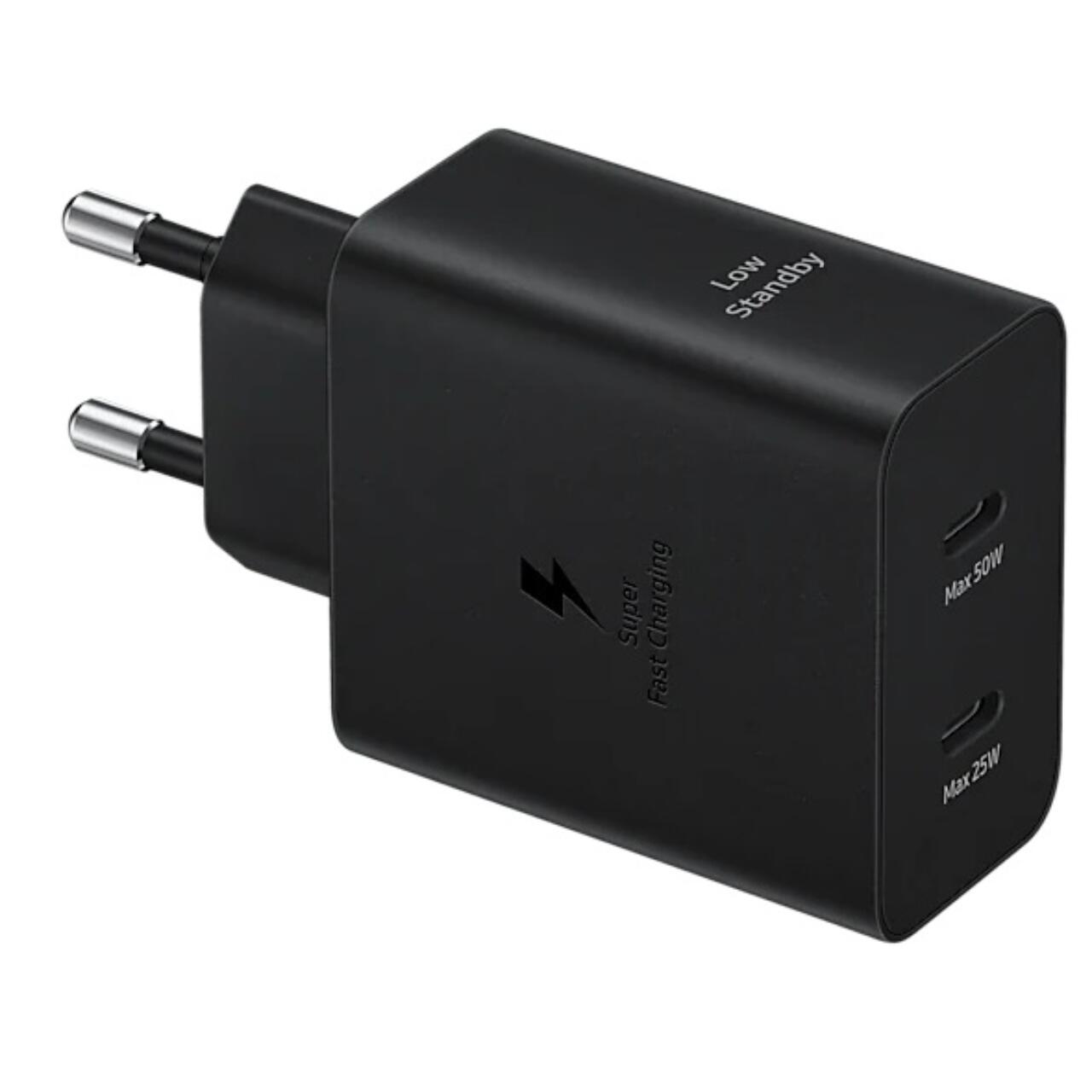 Samsung Netzwerk-Ladegerät-Set Super Fast Charger Common Duo 2 x USB Typ-C, Kabel Typ-C - Typ-C (5A), Schwarz