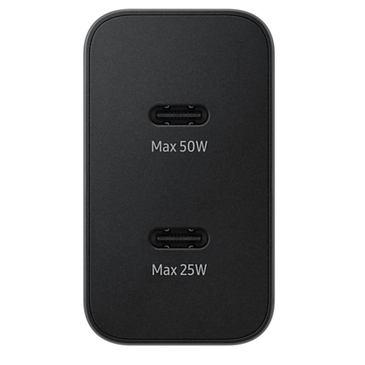 Samsung Netzwerk-Ladegerät-Set Super Fast Charger Common Duo 2 x USB Typ-C, verbessern Sie Ihr Ladeerlebnis mit 50W Power Adapter Duo, doppelte Eingänge und Super Fast Charging 2.0 bieten eine hocheffiziente Ladekapazität.