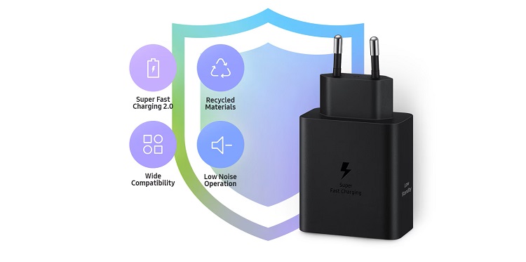 • Superschnelles Laden: Galaxy S10 5G, Galaxy Note10, Galaxy Z Fold2, Galaxy Z Flip3 und höher / Galaxy A90 5G, A80, A70, A52, A33, A23, A05, A15 und höher / Galaxy M31s, M51, M62, M23, M53, M14 und Später / Galaxy Tab S7 & Später • Super Fast Charging 2.0: Galaxy Note 10+, Galaxy S20 Ultra, Galaxy S22+, Galaxy S22 Ultra, Galaxy S23+, Galaxy S23 Ultra, Galaxy S24+, Galaxy S24 Ultra / Galaxy Tab S7 & Später