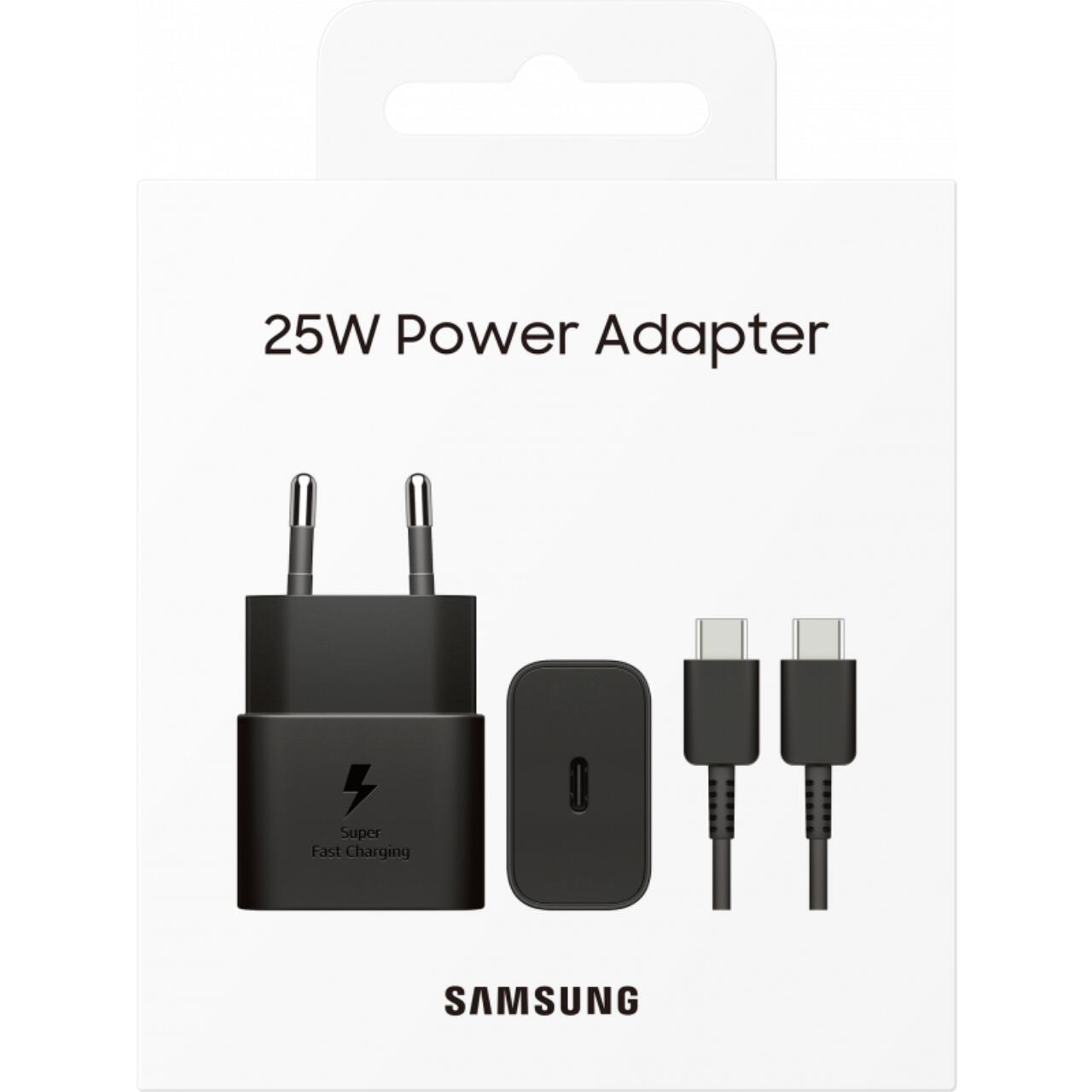 Samsung Original Netzwerk-Ladegerät Superschnelles Laden über USB-Typ-C-Anschluss, 25 W, Typ-C – Typ-C-Kabel im Lieferumfang enthalten, 1 m, Schwarz