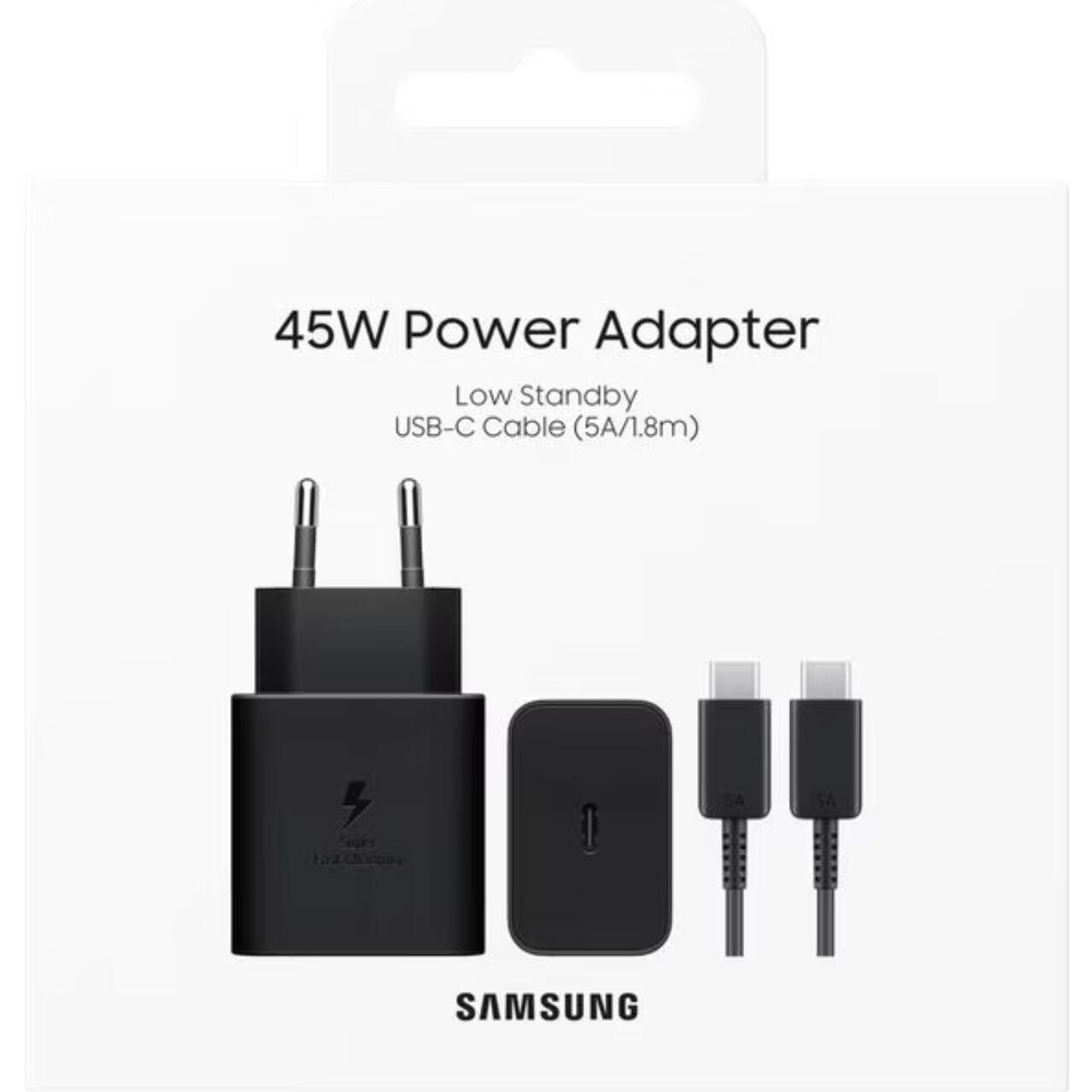 Samsung Original Netzwerk-Ladegerät, superschnelles Laden, USB-Typ-C-Anschluss, Low Standby, 45 W, Typ C – Typ-C-Kabel (5 A) im Lieferumfang enthalten, 1,8 m, Schwarz