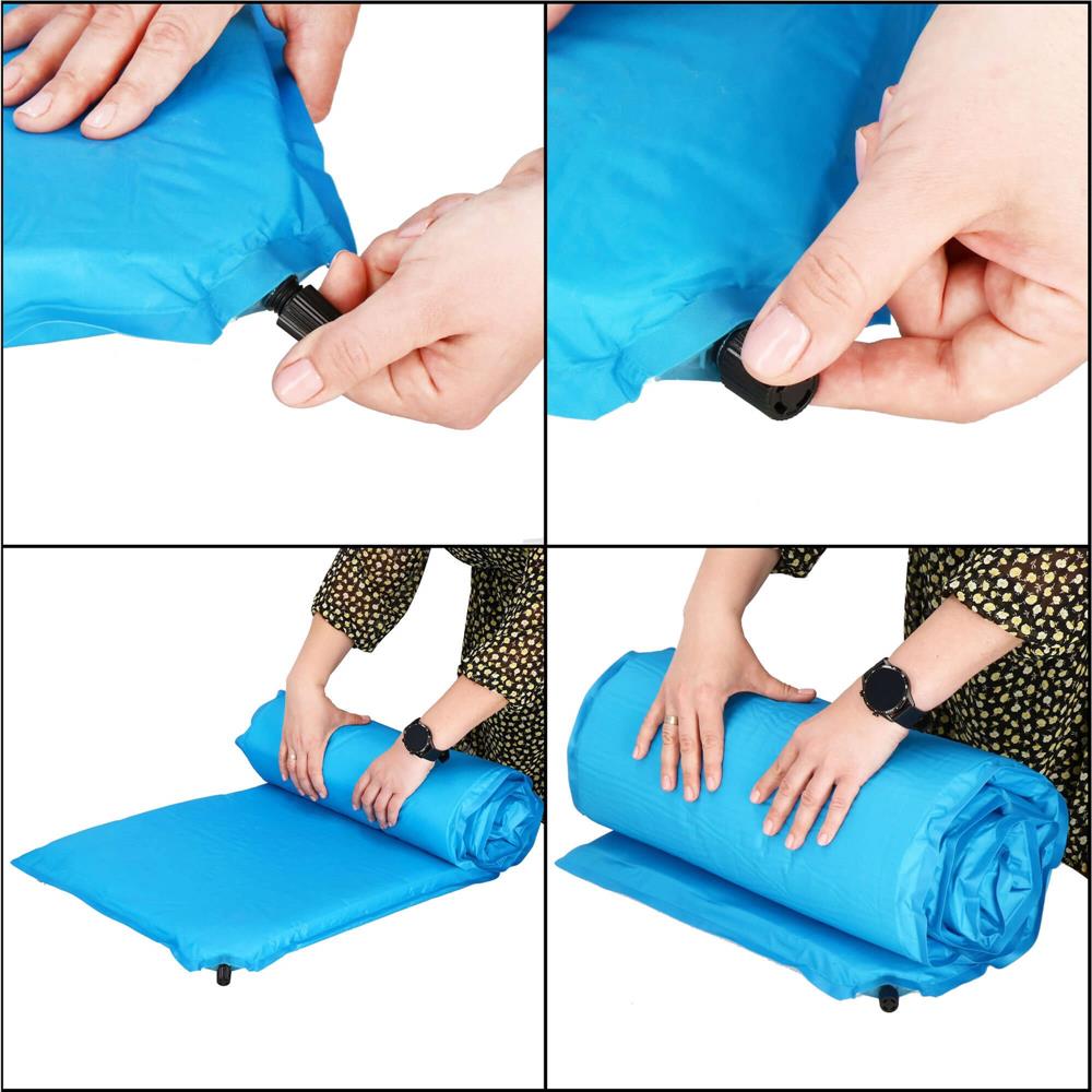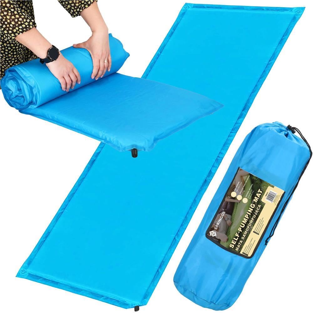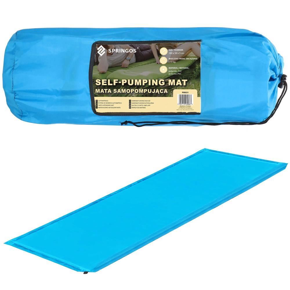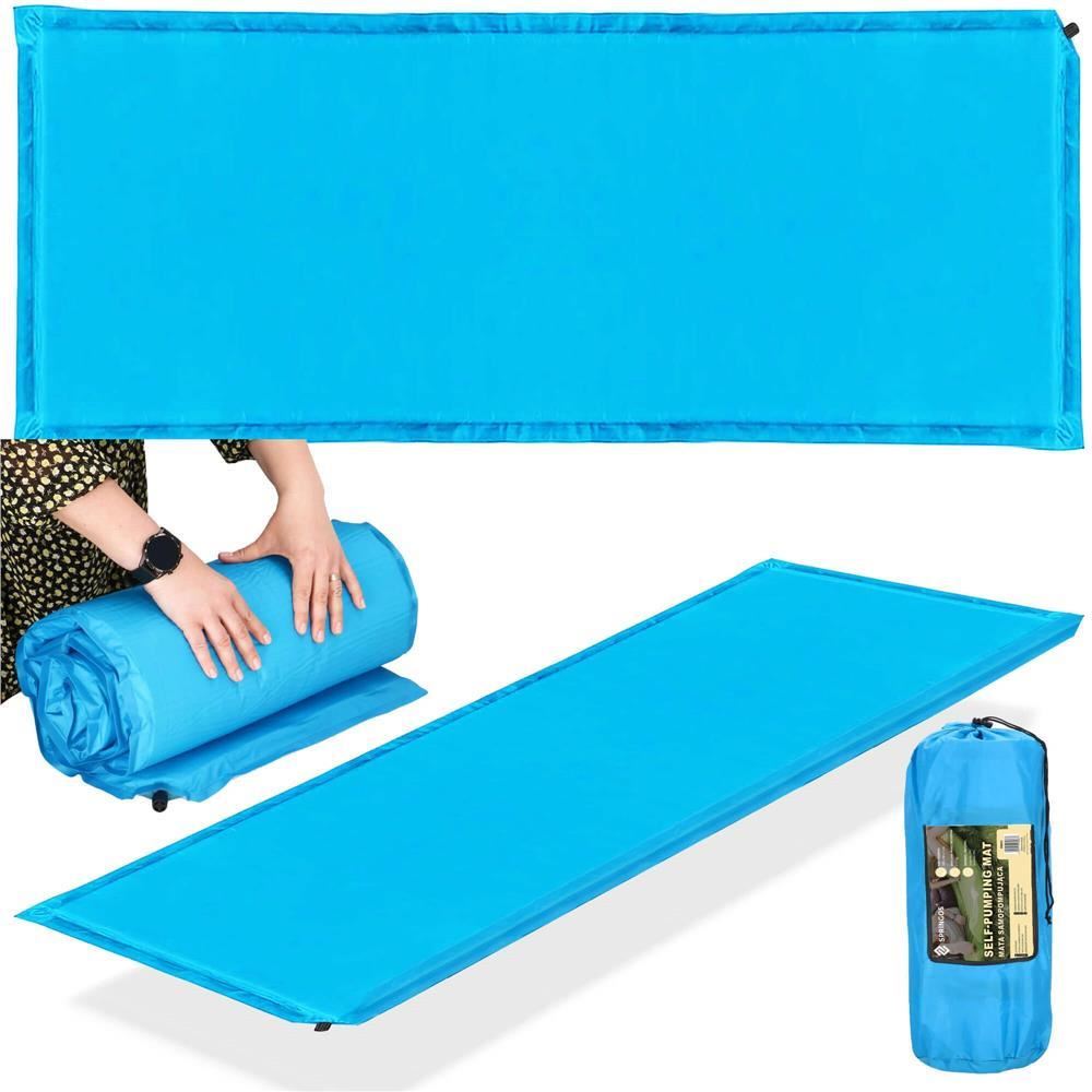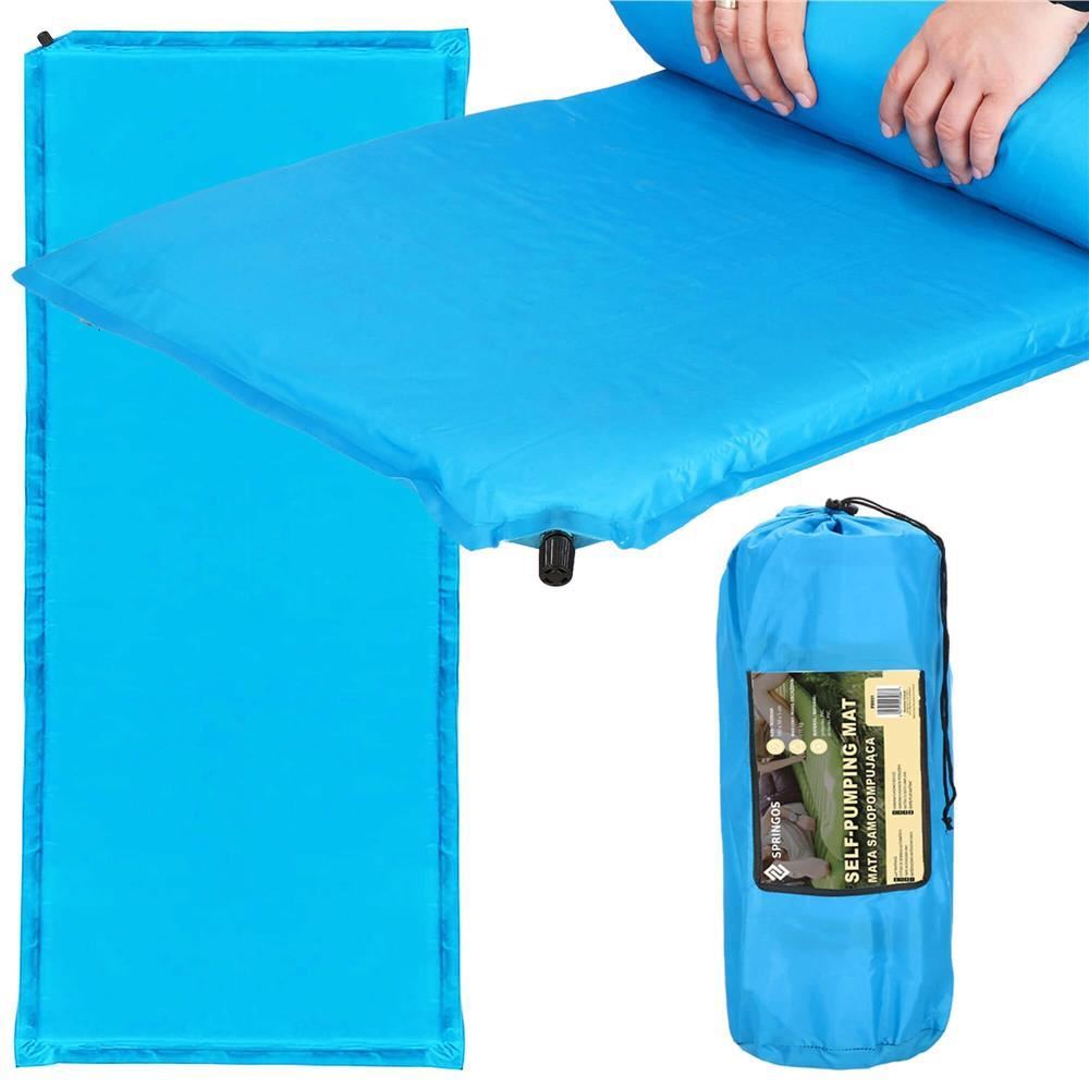 Selbstaufblasende Campingmatratze, Polyester und PU-Schaum, blau, 180x50 cm, Springos