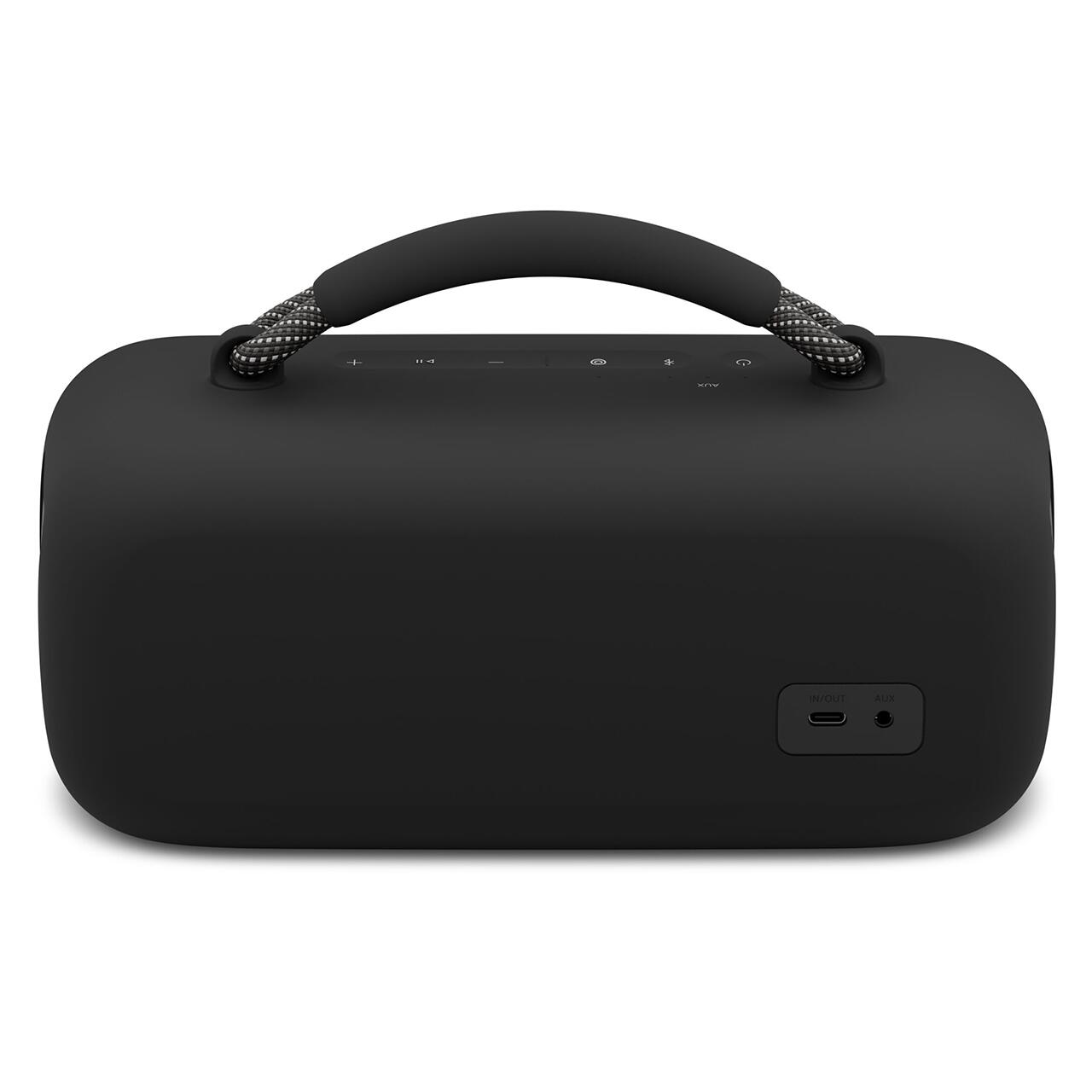 Dank seiner Größe können Sie den Spaß überallhin mitnehmen, während Sie mit dem abnehmbaren Griff und dem optionalen Gurt stressfrei für eine Atmosphäre sorgen können. Kommen Sie einfach vorbei, drücken Sie auf „Play“ und überlassen Sie der Musik den Rest.