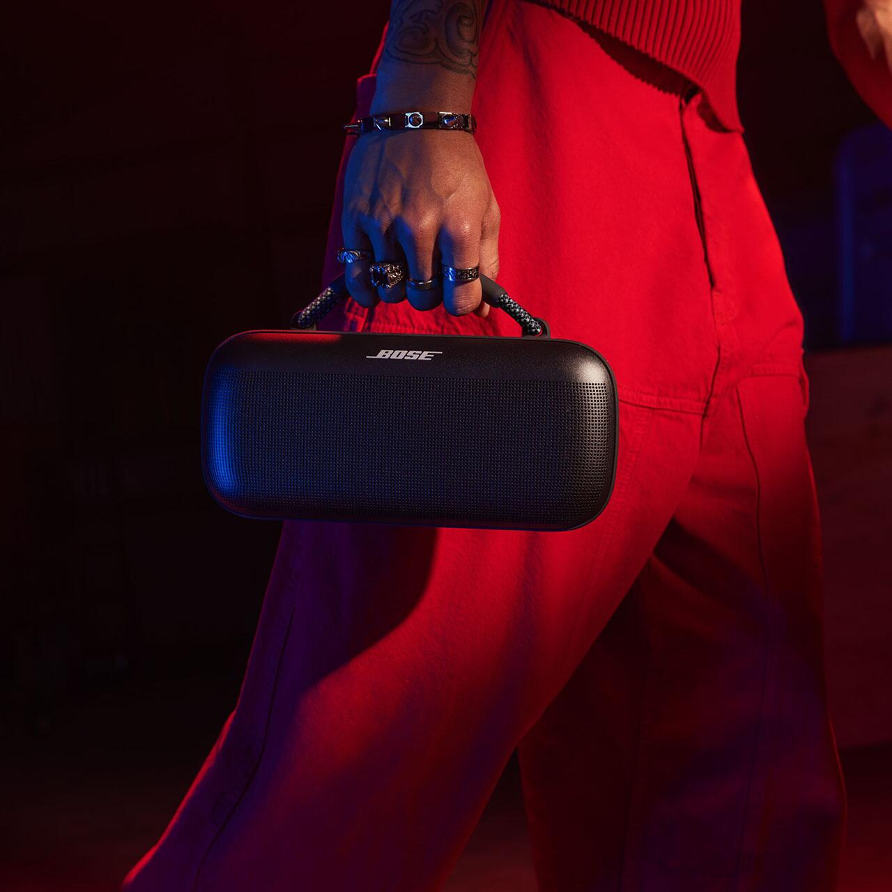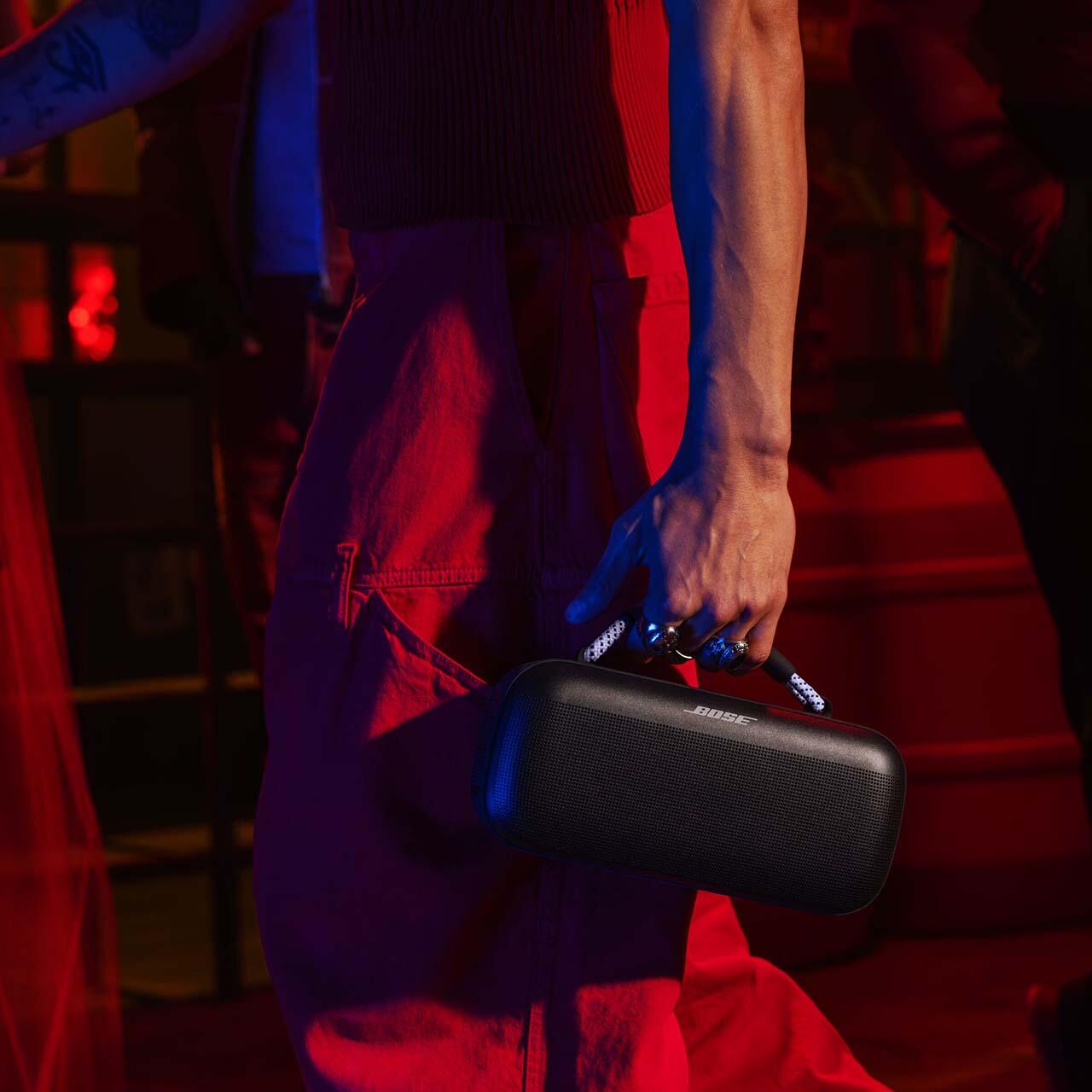 Ein optionales Dank des stylischen Gurts können Sie Ihre Partymusik auf der Schulter tragen.