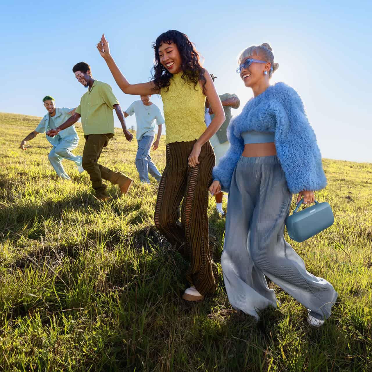 Dank des kompakten Designs und des Tragegriffs aus einem einzigartigen Seil mit weicher Textur lässt sich der Lautsprecher leicht zu jeder Party transportieren.