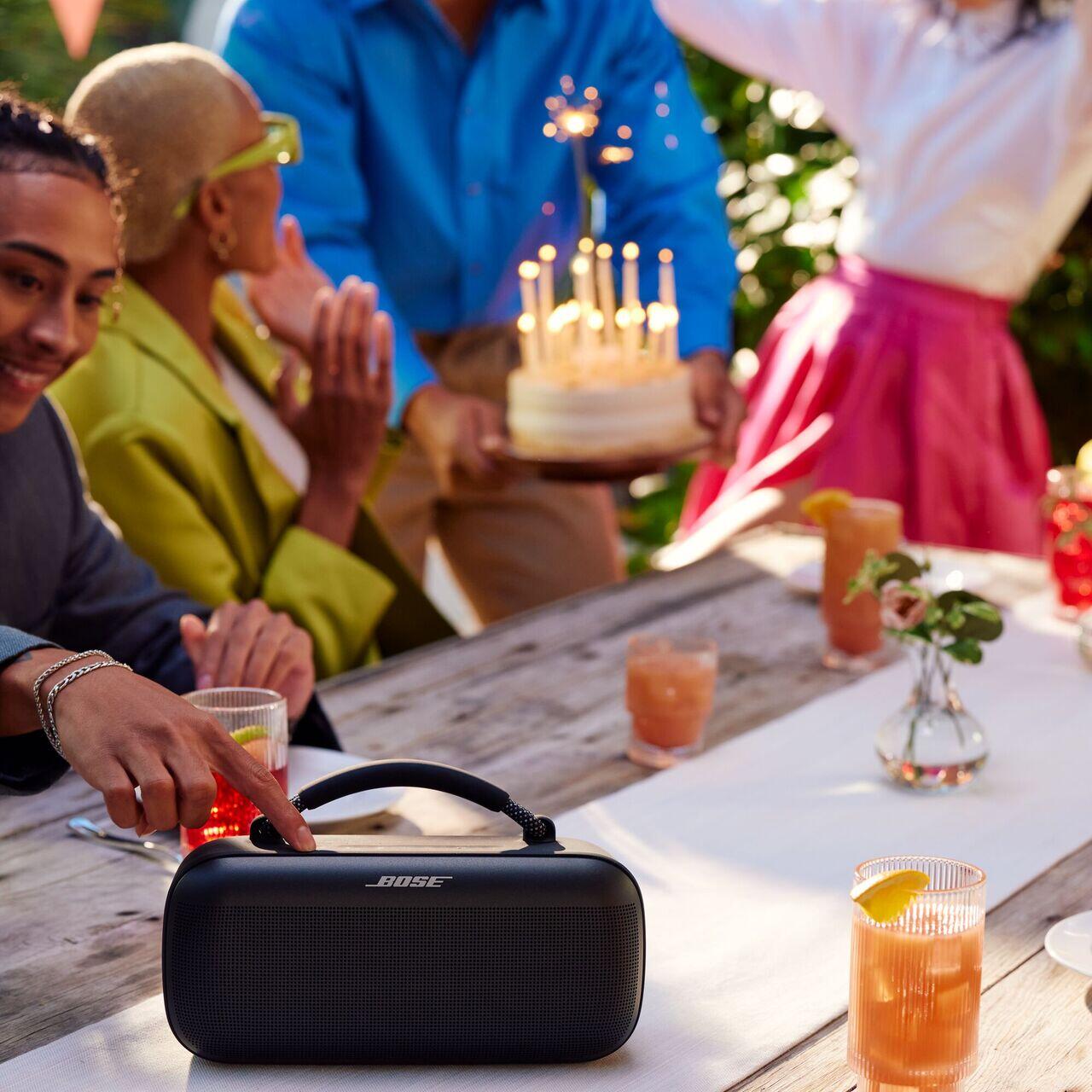 Mit Bose SimpleSync können Sie ein Hörerlebnis in mehreren Räumen schaffen. Um Sound in Ihrem ganzen Zuhause wiederzugeben, öffnen Sie die Bose App und verbinden Sie Ihren SoundLink Max-Lautsprecher mit Ihren vorhandenen Bose Soundbars oder Smart-Lautsprechern.