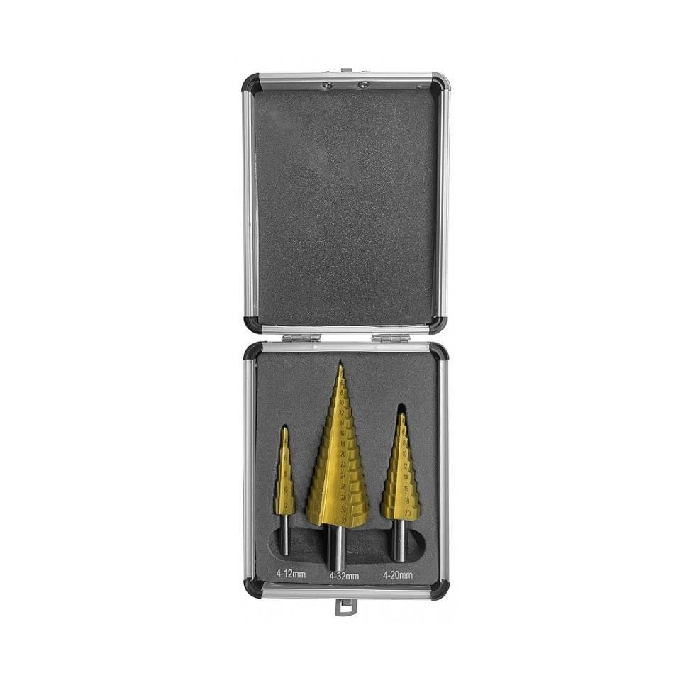Drill bit for metal, in steps, titanium, aluminum kit, set of 3 pcs, 4-12/20/32 mm, Strend Pro